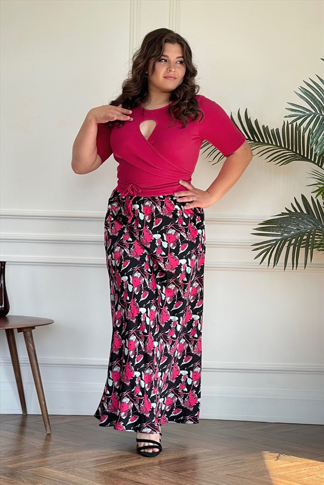 Стильная юбка из мягкой струящейся ткани подчеркнет достоинства женской фигуры. Юбка силуэта трапеция виртуозно обыгрывает фигуру благодаря оригинальному крою модели. Пояс на резинке способствует оптимальной посадке по фигуре. Оригинальный принт добавляет динамичности и освежает образ. Носить юбку такого плана можно с любимыми футболками, обтягивающими водолазками, блузами и рубашками.