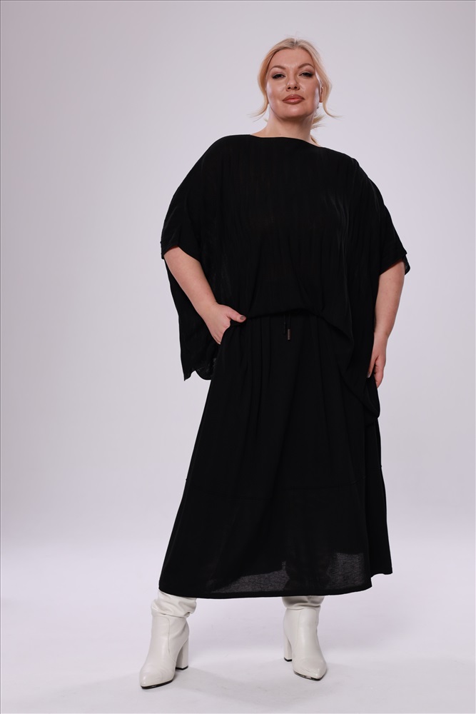 Юбка свободная на резинке с люрексом черная