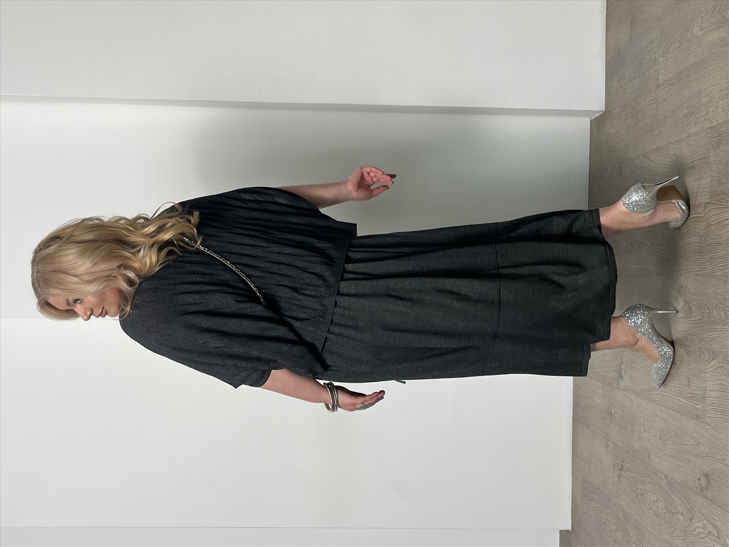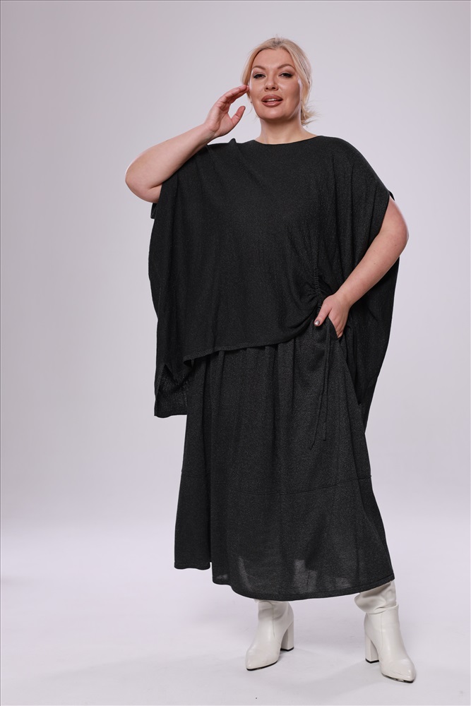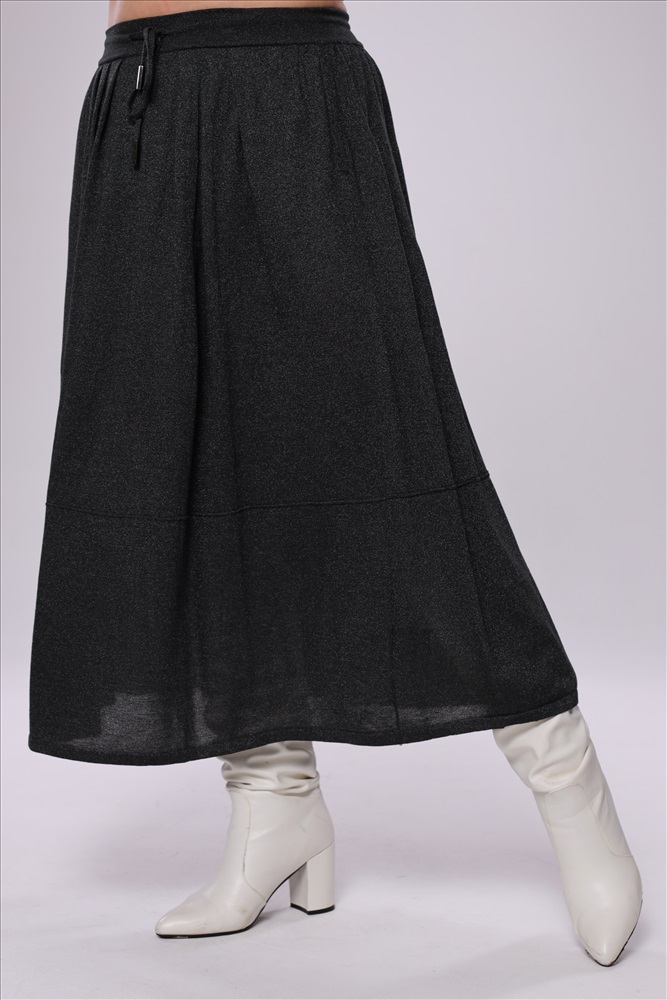 Юбка свободная на резинке с люрексом серо-зеленая