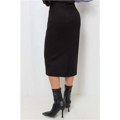 Офисная юбка-карандаш из плотного трикотажного полотна. Верх на широкой резинке, обеспечивающей комфортную посадку на талии. В среднем шве спинки расположена потайная застежка на молнию. Модель без подклада. Низ ровный, сзади шлица.