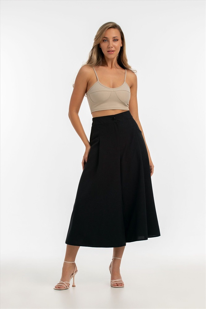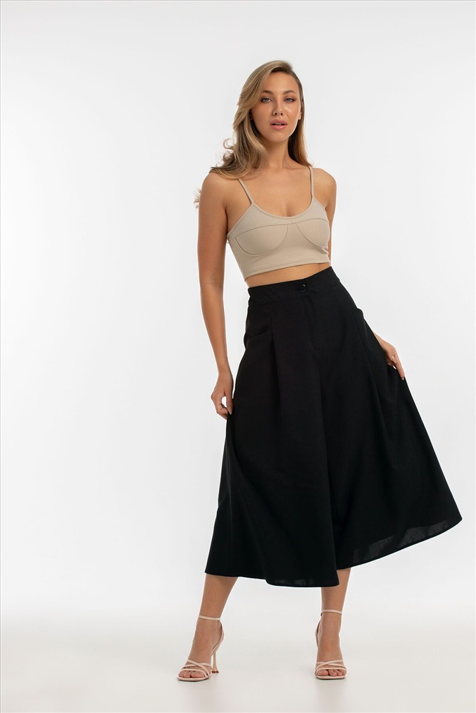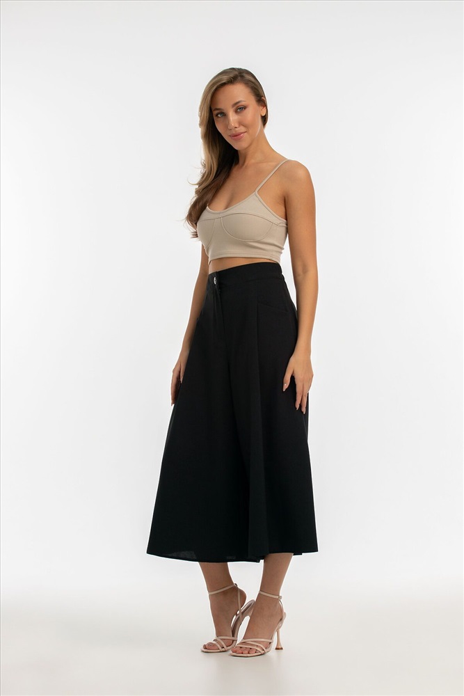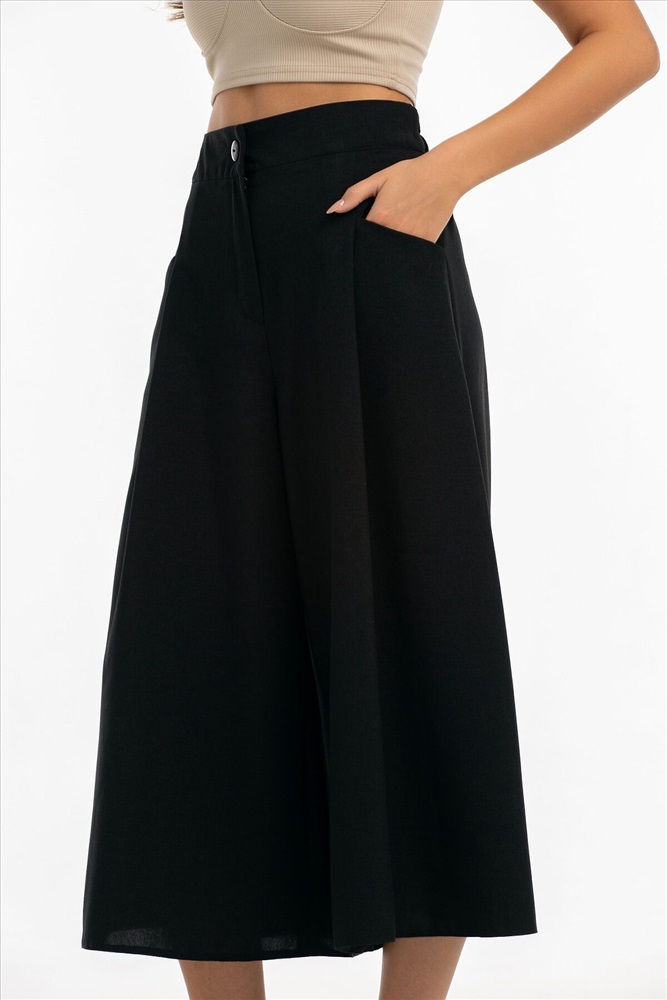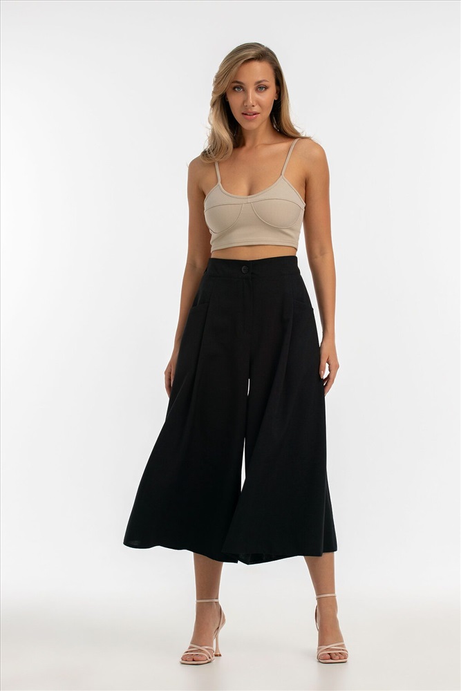 ID товара: 1126761 Состав: Вискоза 60%, Полиэстер 35%, Эластан 5% Сезон: Весна/Лето Длина: Укороченные Фасон: Широкие Вид застежки: Молния, пуговица Посадка: Высокая Тип карманов: С отрезным бочком Основная ткань: Вискоза Стиль: классический Вид ткани: Костюмная ткань Страна бренда: Россия Страна производства: Россия Укороченные широкие брюки - кюлоты с карманами и резинкой на талии подойдут женщинам любой комплекции и возраста. Комбинируя с различным верхом и обувью можно кардинально менять образ от строгого делового до расслаблено неформального. Комментарии к товару