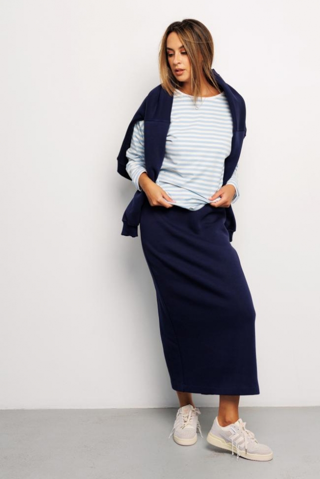 Юбка длинная макси с разрезом 388DNV (Темно-синий)