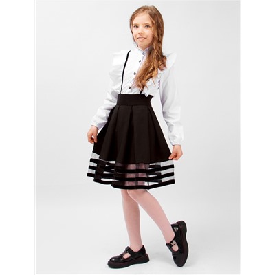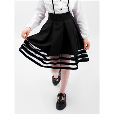 Юбка для девочки Соль&Перец в классическом стиле, с фатиновыми вставками. Модель с удобным широким поясом-резинкой, сзади застегивается на молнию. Безупречно сочетается с любой блузкой и идеально вольется в современный школьный гардероб.