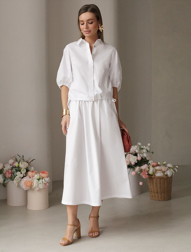Юбка выполнена из легкого хлопкового поплина. Воздушная модель дополнена боковыми карманами и эластичным поясом на резинке со сборкой. В изделии будет комфортно, даже в самое жаркое время года. Подходит для любой фигуры. Сочетается в костюме с блузкой D29.247 и D29.264.