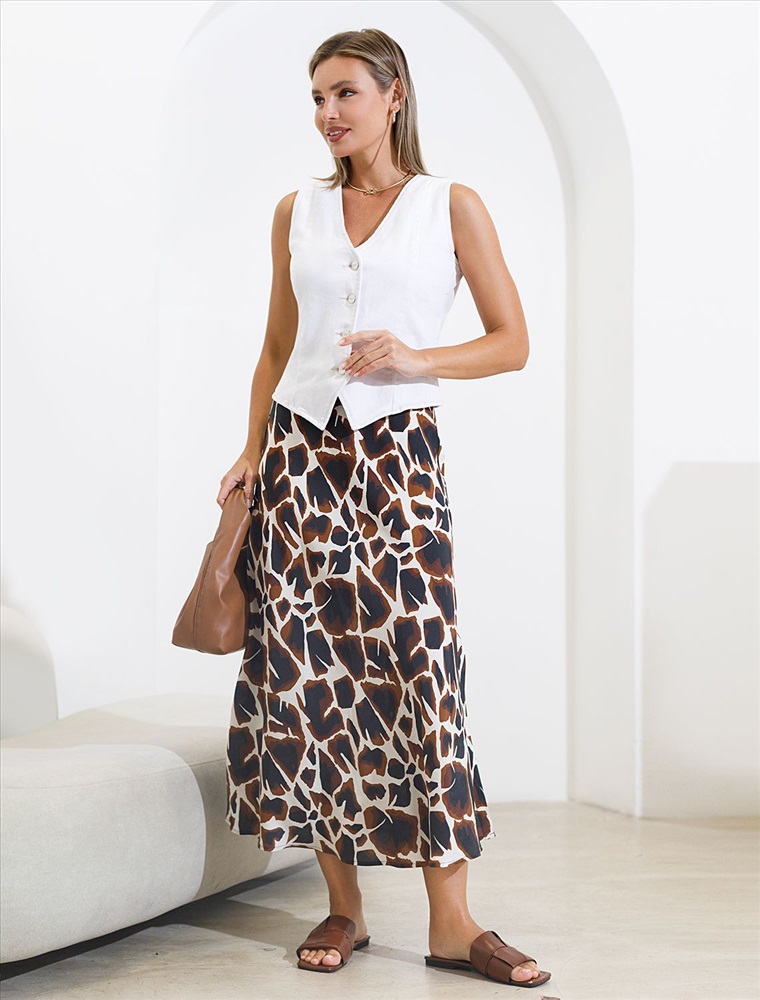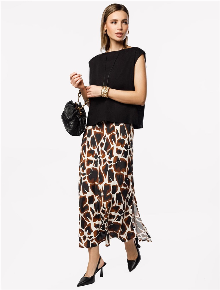Состав: 55%Вис 45%Лиоцелл (Вис); Плотность: 115 Г/м2 Юбка выполнена из вискозы с лиоцеллом. Модель А-силуэта кроенная по косой. Ткань изящно блестит и приятно охлаждает кожу в жаркое время года. Модель сечетается в костюме с топом D23.062 и блузкой D29.263