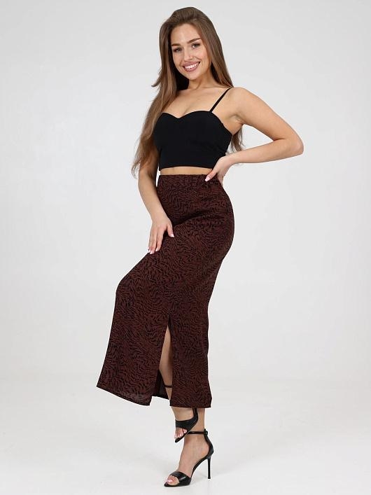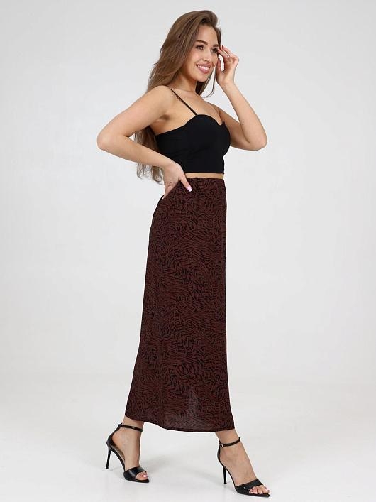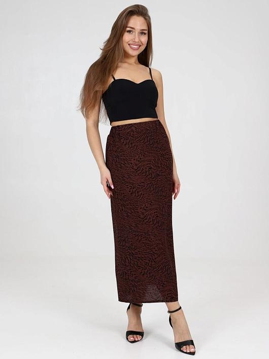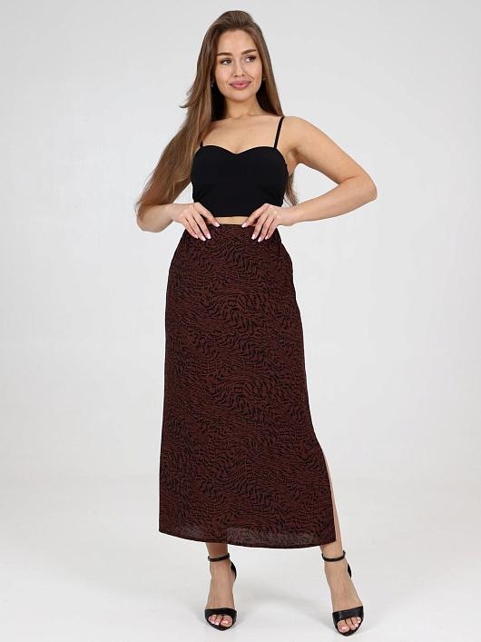 Юбка женская "макси" из набивного штапеля. Пояс притачной на резинке, внизу бокового шва - разрез.