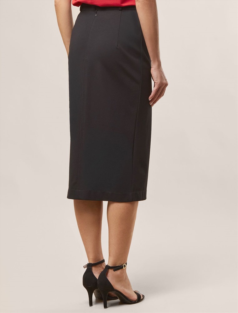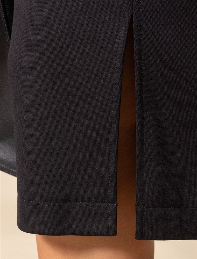 Юбка-карандаш выполнена из плотного джерси. Модель без подкладки дополнена разрезом спереди. Эластичный материал хорошо садится по фигуре обеспечивая абсолютный комфорт. Сзади застежка на потайную молнию. Выгодная инвестиция в базовый гардероб, подходит на все сезоны.