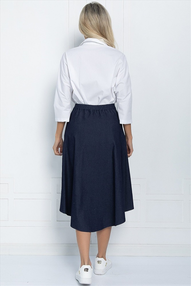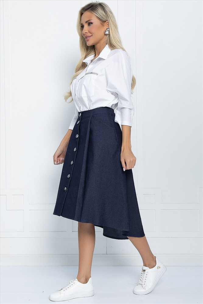 ID товара: 1048753 Состав: 95% Хлопок, 5% Эластан Сезон: Демисезон Длина: Миди Фасон: Расклешенный Вид застежки: Пуговицы Тип карманов: Прорезные Основная ткань: Хлопок Стиль: повседневный Страна бренда: Россия Страна производства: Россия Артикул: Ю11527. Тип ткани: смесовая. Состав: 95% хлопок, 5% эластан. Материал: джинса. Цвет: синий. Принт: отсутствует. Длина: миди. Вид застежки: пуговицы. Резинка в поясе: есть. Карманы: есть Тип посадки: средний. Пояс: притачной. Крой: свободный. Фасон: трапеция. Декоративные элементы: отсутствуют. Длина готового изделия по боковому шву: 44-54/ 76 см. Размер изделия на модели: 44. Рост модели: 168 см. Юбка миди это то, что подчеркнет вашу фигуру и добавит стильного шарма вашему образу! Благодаря своему трендовому силуэту и трапециевидной форме, она станет идеальным вариантом для деловых встреч, вечеринок или прогулок по городу. Уход за изделием: ручная стирка до 30 градусов; нельзя отбеливать; отжим запрещён; гладить при t не более 110 С; гладить с изнанки. Внимание! Рекомендуем ориентироваться на размерную сетку и выбирать свой привычный размер, согласно размерной таблице. *Допуск отклонения длины при массовом производстве 1-3 см является нормой. Комментарии к товару
