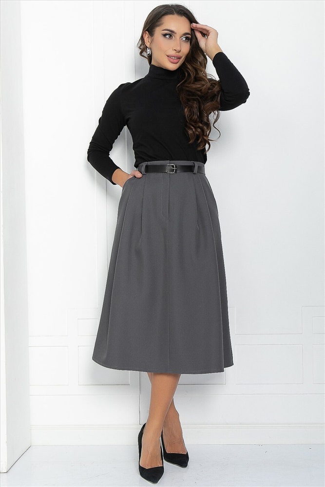 ID товара: 1056770 Состав: 100% Полиэстер Сезон: Демисезон Длина: Миди Фасон: Расклешенный Вид застежки: Молния, крючок Тип карманов: С отрезным бочком Основная ткань: Полиэстер Стиль: классический Страна бренда: Россия Страна производства: Россия Артикул: Ю11679. Тип ткани: синтетическая. Состав: 100% полиэстер. Материал: костюмная. Цвет: серый. Принт: отсутствует. Длина: миди. Вид застежки: на молнию и крючок. Резинка в поясе: отсутствует. Карманы: есть. Тип посадки: средний. Пояс: притачной. Крой: А-силуэт. Фасон: трапеция. Декоративные элементы: складки спереди (возле карманов). Длина готового изделия по боковому шву: 44-54/ 75 см. Размер изделия на модели: 44 Рост модели: 167 см. Юбка А-силуэта — это не только стильный, но и очень удобный элемент повседневного гардероба. Она прекрасно сочетается с различными вещами: будь то худи, водолазка, блузка, рубашка или футболка — вы всегда будете выглядеть актуально и модно. Универсальность этой модели позволяет сочетать её как с кроссовками, создавая неформальный образ, так и с туфлями для более нарядных выходов. А входящий в комплект кожаный ремешок добавит интересный акцент и завершит ваш образ. Уход за изделием: ручная стирка до 30 градусов; нельзя отбеливать; отжим запрещён; гладить при t не более 110 С; гладить с изнанки. Внимание! Рекомендуем ориентироваться на размерную сетку и выбирать свой привычный размер, согласно размерной таблице. *Допуск отклонения длины при массовом производстве 1-3 см является нормой. Комментарии к товару