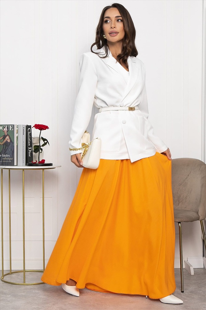 ID товара: 1131471 Состав: 50% Хлопок, 50% Вискоза Сезон: Весна/Лето Длина: Макси Фасон: А-силуэт Основная ткань: Хлопок Стиль: повседневный Страна бренда: Россия Страна производства: Россия Состав : 50% хлопок, 50% вискоза Материал : штапель Цвет : Оранжевый Принт : отсутствует Длина : макси Карманы : Отсутствуют Резинка в поясе : Да Вид застежки : без застёжки Тип посадки юбки : Средняя Пояс юбки : притачной Крой юбки : А-силуэт Фасон юбки : Солнце Декоративные элементы : отсутствуют Длина готового изделия по боковому шву : 44-98 см, 46-98 см, 48-98 см, 50-98 см Отснято с жакетом Б13885-33М [ https://ltcollection.ru/catalog/zhakety/193573/ ] Юбка из штапеля оранжевого цвета — это отличный вариант для летнего гардероба. Она будет уместна как в жаркие дни, так и в тёплые летние вечера. Длина макси придаёт образу женственность и элегантность. Резинка на талии обеспечивает комфортную посадку, подчёркивая её и создавая гармоничный силуэт. Внимание! Рекомендуем ориентироваться на размерную сетку и выбирать свой привычный размер, согласно размерной таблице. *Допуск отклонения длины при массовом производстве 1-3 см является нормой. Уход за изделием: Ручная стирка или стирка в машине при температуре до 30 °C, деликатный режим. Не использовать отбеливатели. Разрешена глажка при температуре до 110 °C. При глажке использовать специальную насадку на подошве утюга, гладить с паром. Не замачивать и не выжимать. Стирать изделие наизнанку, отдельно от других вещей. Комментарии к товару