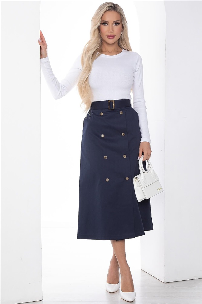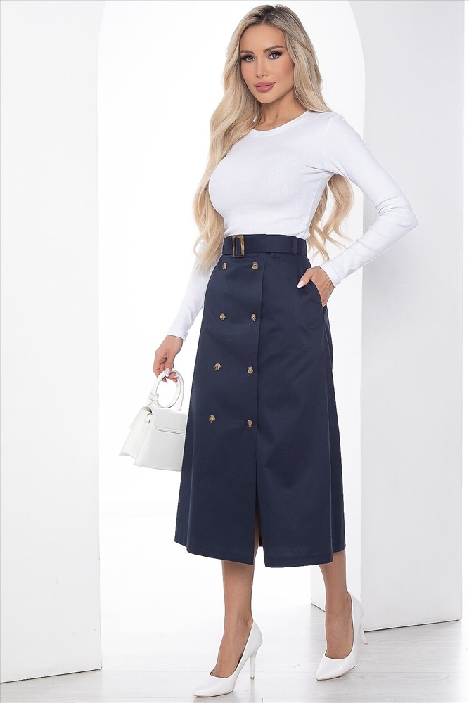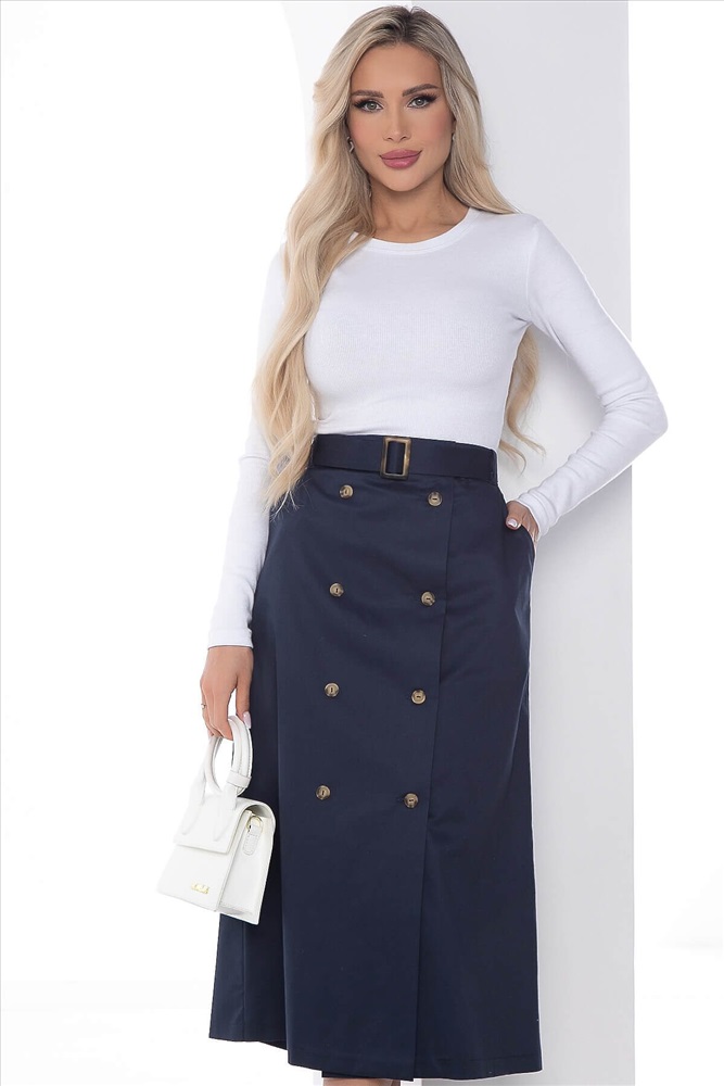 Юбка длиной миди расклешенная к низу точно не станет лишним в вашем гардеробе. Такая юбка идеально сочетается с любым вариантом верха от строгой рубашки до романтической блузки с пышными рукавами и оборками. В комплект входит пояс из основной ткани, в боковых швах присутствуют карманы.