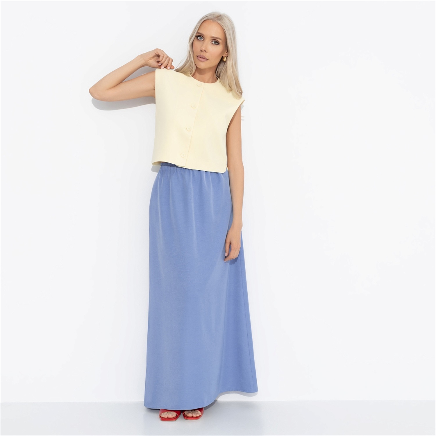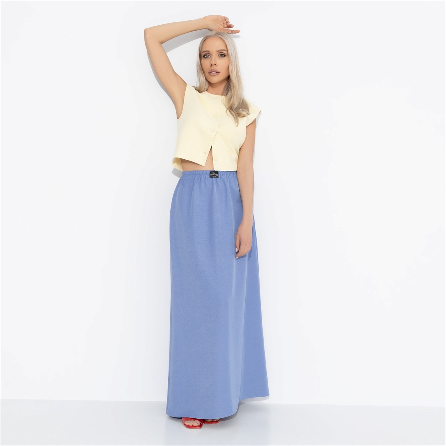 Вжух! И ты на лазурном берегу европейского побережья. Сидишь в мягком кресле на террасе ресторана с легким коктейлем на основе игристого. На тебе юбка в длине макси от CHARUTTI небесного оттенка и вся жизнь впереди, когда ты смотришь на море. Трендовая длина, очень удобная. Изделие с карманами. Пояс юбки на резинке. Есть лейбл бренда на передней части пояса.