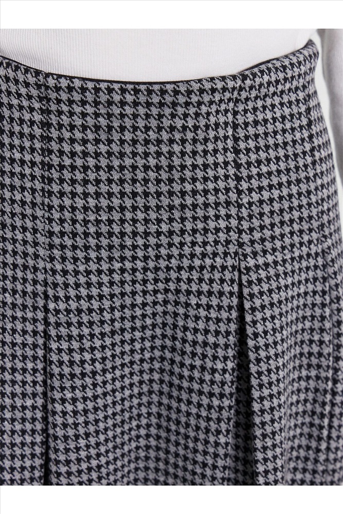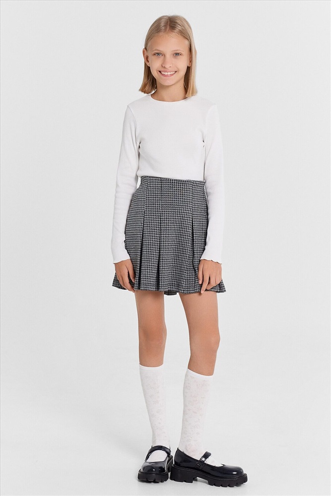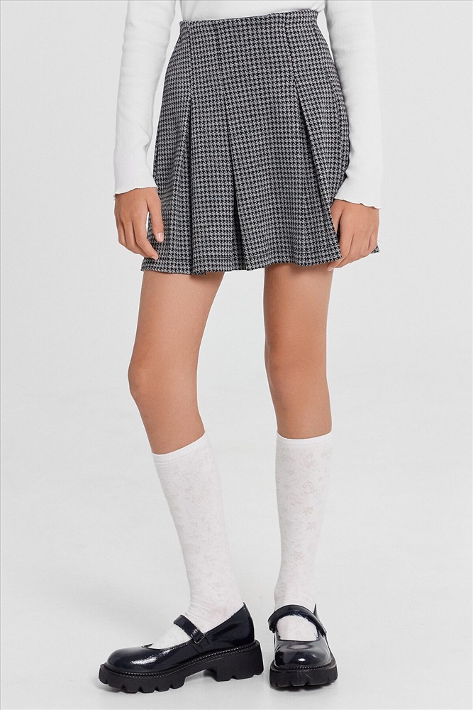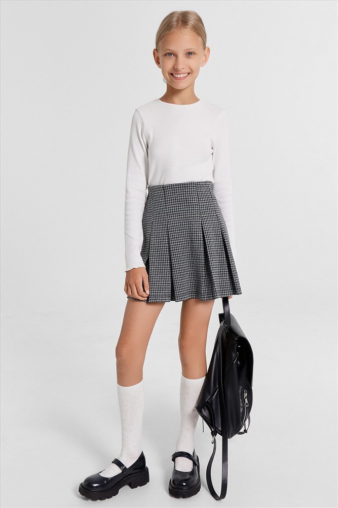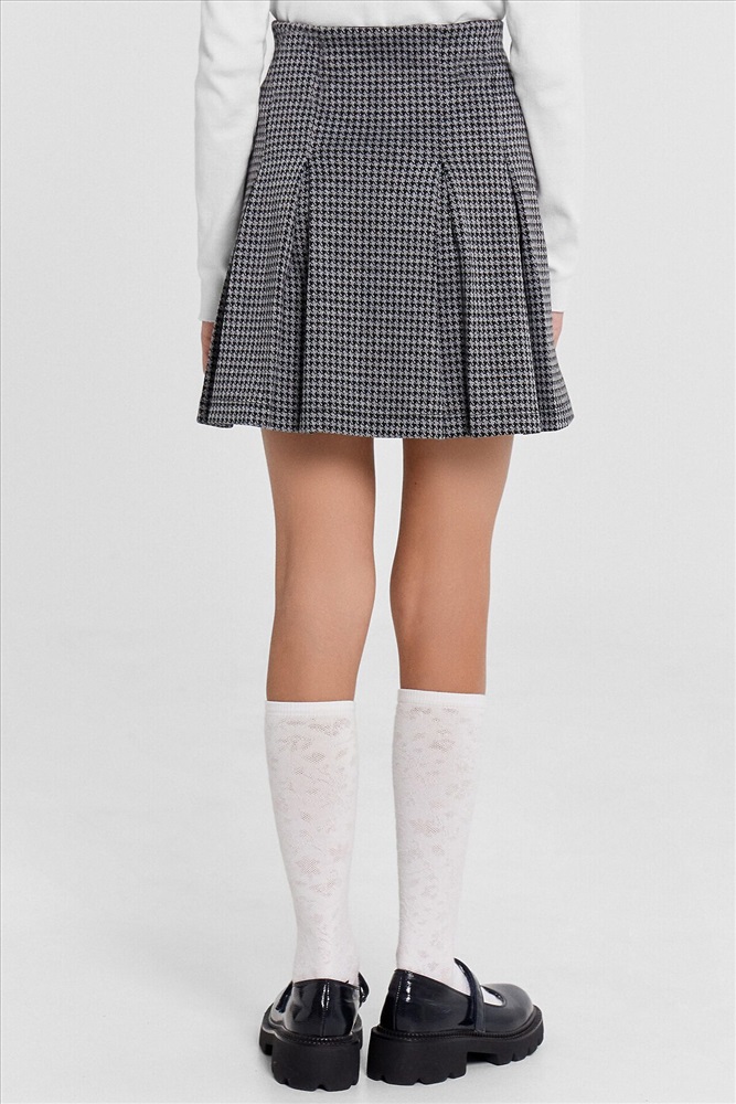 Юбка из текстильного полотна академик длиной выше колен. Силуэт – расклешенный к низу. Линия талии классическая. Отличный пример универсальной одежды, которую можно комбинировать и дополнять аксессуарами!