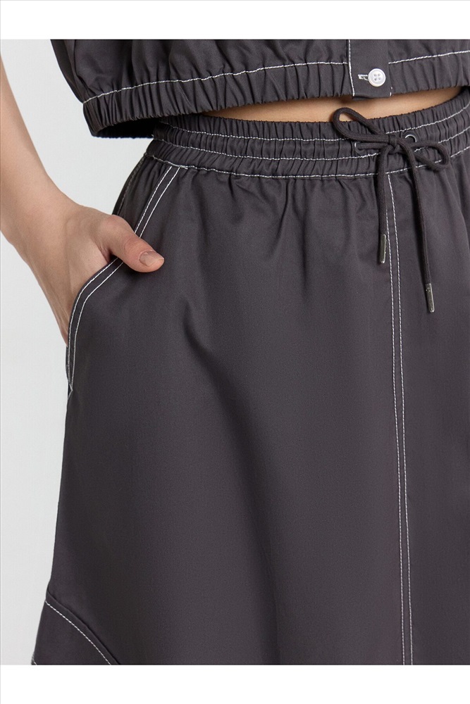 Эта женская юбка миди — идеальный выбор для стильного и комфортного образа! Трапециевидный крой обеспечивает лёгкость и свободу движений, а эластичная талия на кулиске гарантирует удобную посадку без стеснения. Боковые карманы добавляют практичности, а контрастные строчки придают модели выразительность и оригинальность. Натуральный хлопок обеспечивает воздухопроницаемость и мягкость, делая юбку отличным вариантом для теплого сезона. Для создания гармоничного комплекта дополните её подходящим верхом из этой же коллекции! Отличный вариант для прогулок, отдыха и повседневных стильных образов.