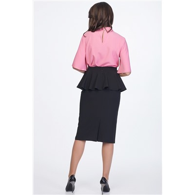 Стильная юбка-карандаш из плательно-костюмного полотна. Верх оформлен притачным поясом, дополнен пышной баской. В среднем шве спинки расположена застежка на пуговицу и потайную молнию. Модель на подкладе. Низ ровный, сзади шлица.