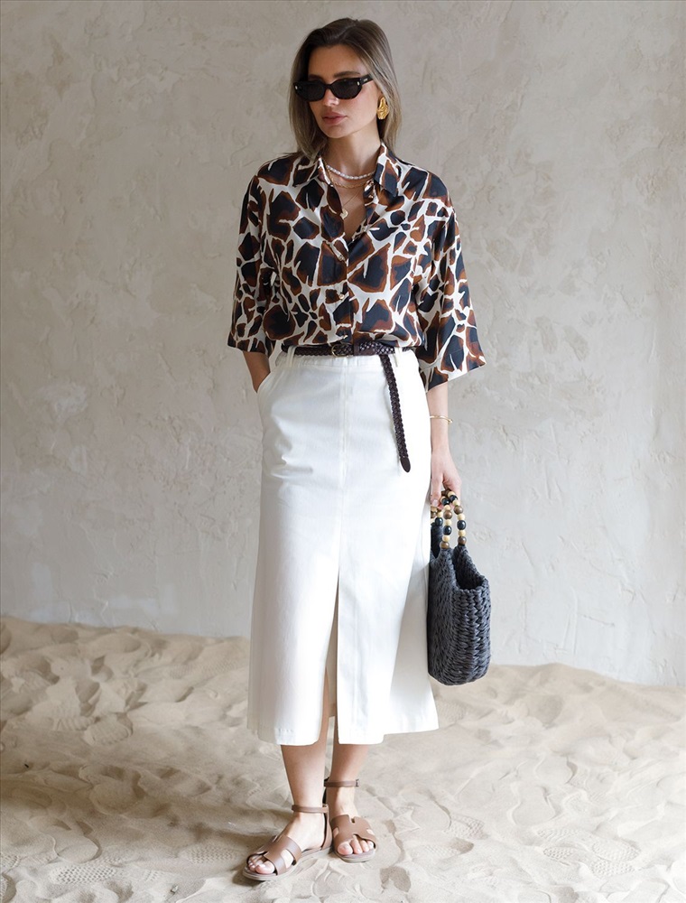 Юбка-миди из хлопка с разрезом
