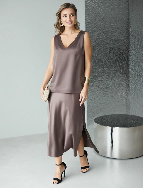 Юбка миди черного цвета с разрезом из струящегося плотного сатина — находка для модниц, ценящих элегантную классику и современный стиль. Модный крой длинной юбки подчеркивает фигуру, а мягкий эластичный пояс обеспечивает дополнительный комфорт на протяжении всего дня. Благодаря продуманному крою, юбка хорошо сидит на фигуре и подчеркивает силуэт без лишних деталей, подойдет для обладательниц пышных форм и девушек маленьких размеров. Шелковистая текстура материала приятно ощущается на коже, не просвечивает и сохраняет форму даже после длительной носки. Гладкая поверхность добавляет благородного блеска, делая образ неповторимым и шикарным в любой ситуации. Струящийся плотный сатин отличается устойчивостью к сминанию: юбка не мнется, что позволяет выглядеть безупречно на работе, встрече или прогулке. Атласная юбка придает образу элегантный и благородный вид, а разрез добавляет легкую динамичность и создает утонченный акцент на линии ног, сохраняя при этом сдержанную женственность. Юбка визуально вытягивает силу