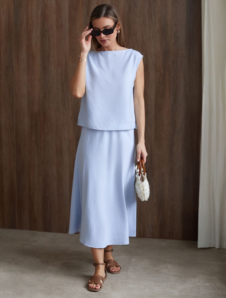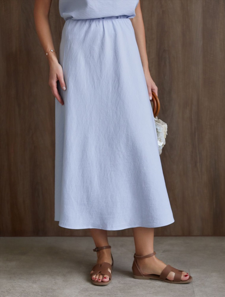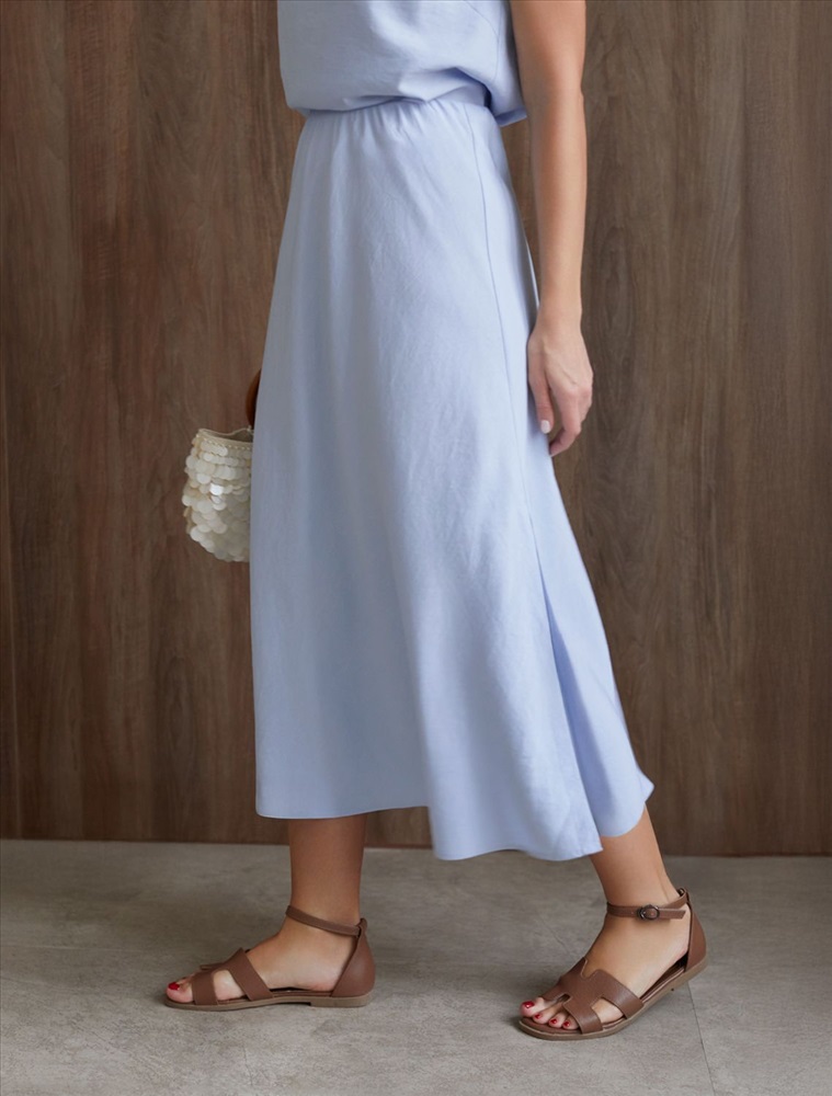 Юбка голубого цвета длины миди выполнена из плотного лиоцелла. Модель, скроенная по косой, мягко струится по телу и отлично драпируется. Лиоцелл это более дорогой и экологичный вариант вискозы, очень прочный и шелковистый. Ткань отличается от регулярной коллекции из лиоцелла - она содержит еще больше лиоцелла (92%), благодаря чему имеет более нежную шелковистую фактуру. Свободный крой юбки мягко скроет недостатки фигуры, акцентируя внимание на достоинствах и придавая силуэту привлекательность и женственность. Элегантная юбка на эластичном поясе гарантирует комфорт, а разрез с боку добавляет образу легкости и динамики. Расклешеная юбка подойдет на большие размеры, высокий и низкий рост. Юбка А силуэта будет базовым элементом для создания летних романтичных образов и стильных ансамблей на каждый день.