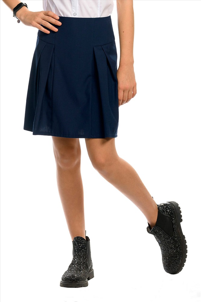 Юбка для девочек. Новинка. Сложный крой переда. Центральная часть расширена книзу, боковые части переда с нестандартными наклонными складками расположены под кокетками. Застежка по спинке на потайную молнию. Пояс по спинке регулируется внутренним эластиком.