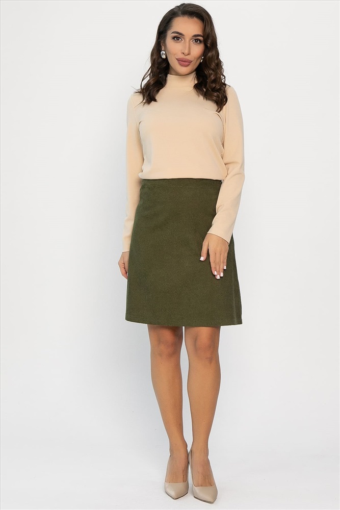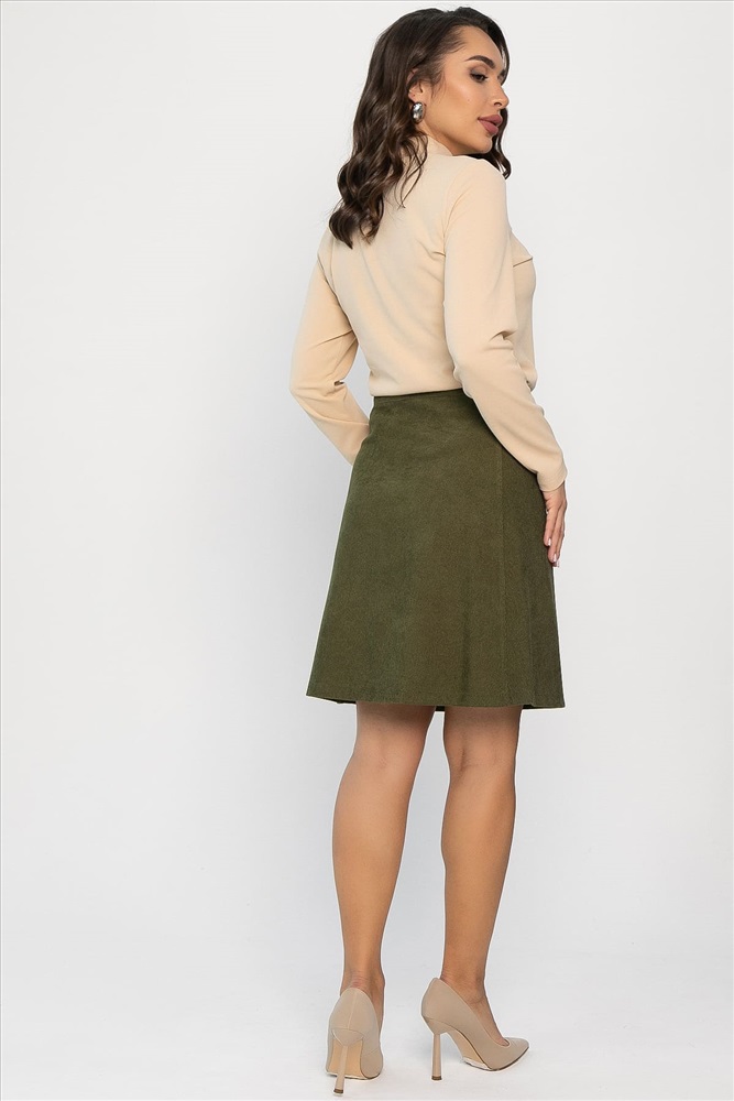 Стильная юбка в оттенке хаки — незаменимый элемент модного гардероба. Эта юбка сочетает в себе комфорт и стиль. Она облегает талию, но при этом достаточно расклешена в бедрах. Благодаря своему удобному крою, эта модель остается любимой женщинами на долгие годы, независимо от модных тенденций.