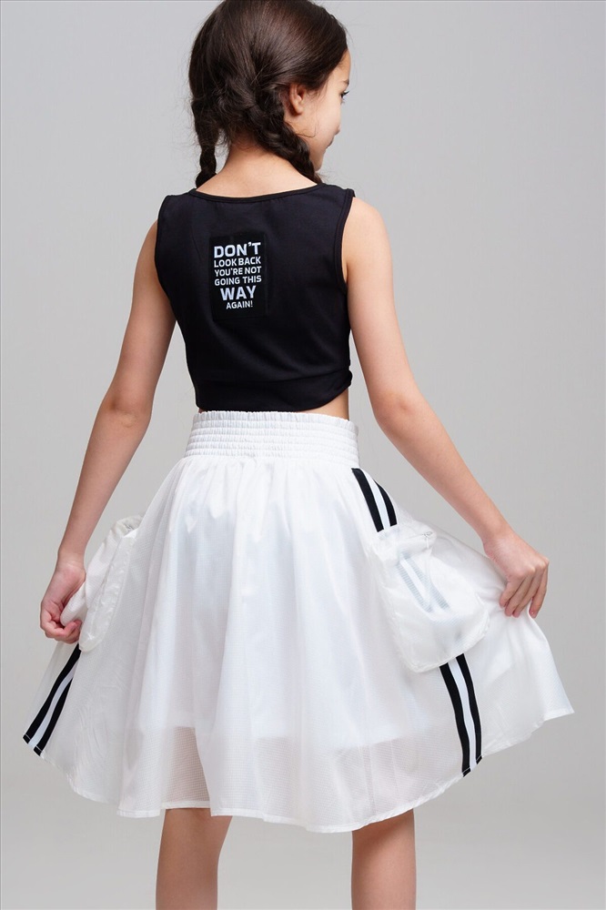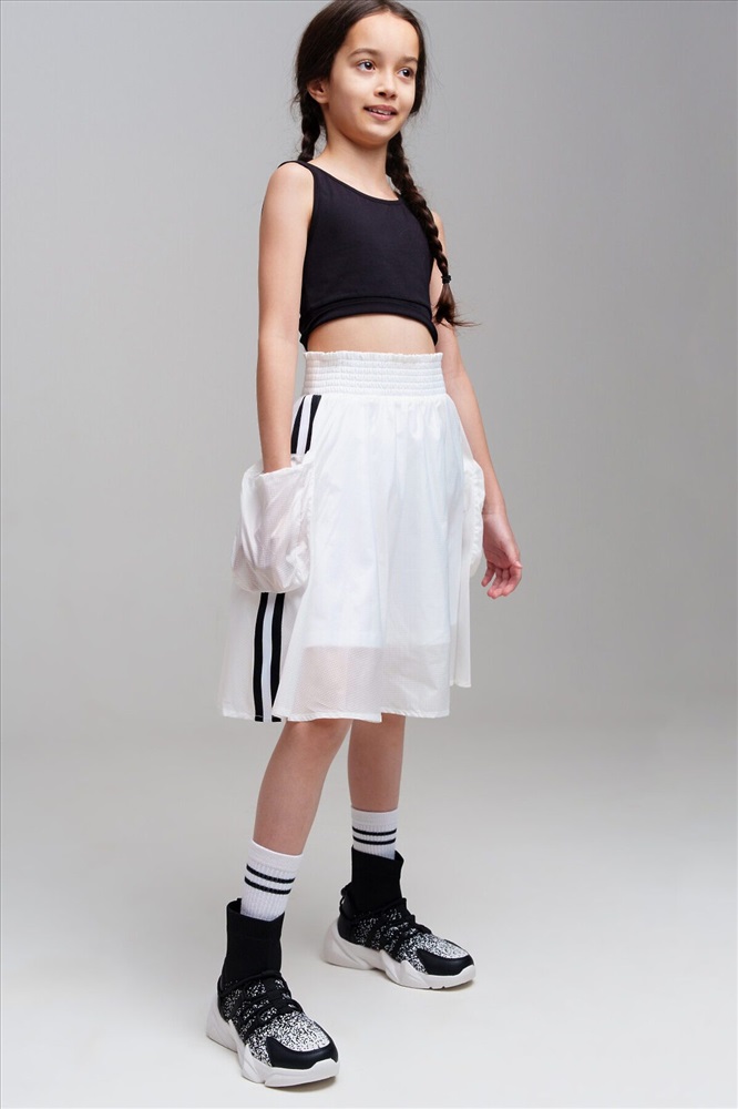 Юбка для девочки подростка. Пояс на резинке. Карманы на молнии. Декор из сетки. Модель выполнена из качественного и плотного текстиля.