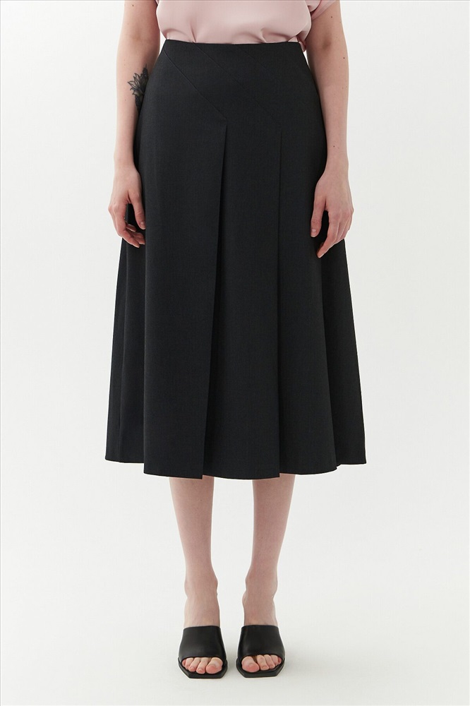 ID товара: 1087502 Состав: Основная ткань- Полиэстер 63%, Вискоза 34%, Эластан 3%; Подкладка- Полиэстер 100% Сезон: Демисезон Длина: Миди Фасон: Трапеция Вид застежки: Молния Основная ткань: Полиэстер Стиль: классический Страна бренда: Россия Страна производства: Россия Юбка расклешенная с разрезами и складками для лучшей посадки на бедрах. Юбка выполнена из костюмной ткани темно-серого цвета с потайной молнией на спинке. Юбка имеет ассиметричный крой и станет новым решением в вашем гардеробе. Комментарии к товару