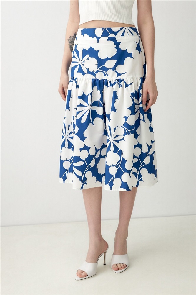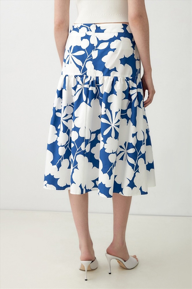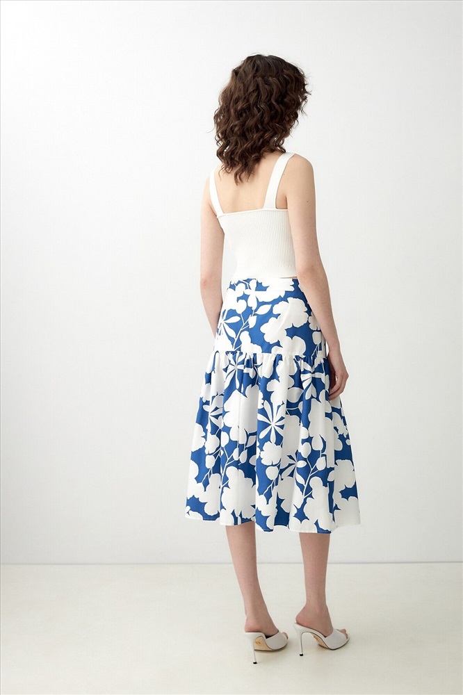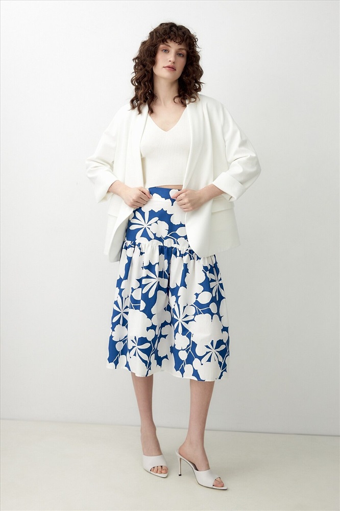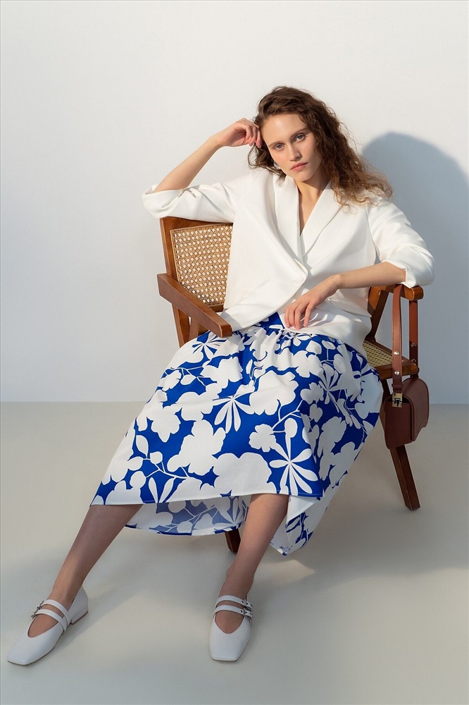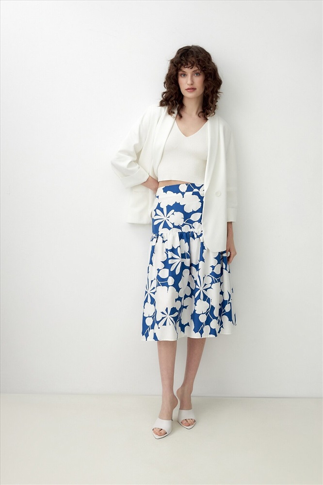 ID товара: 1090775 Состав: Хлопок 70%, Полиэстер 28%, Эластан 2% Сезон: Весна/Лето Длина: Миди Фасон: Трапеция Вид застежки: Молния Рисунок: цветочный Декоративные элементы: Принт Основная ткань: Хлопок Стиль: Романтический Страна бренда: Россия Страна производства: Россия Хлопковая юбка с контрастным бело-синем принтом, на кокетке. Широкий волан на сборке. Юбка с потайной застежкой молнии. Комментарии к товару
