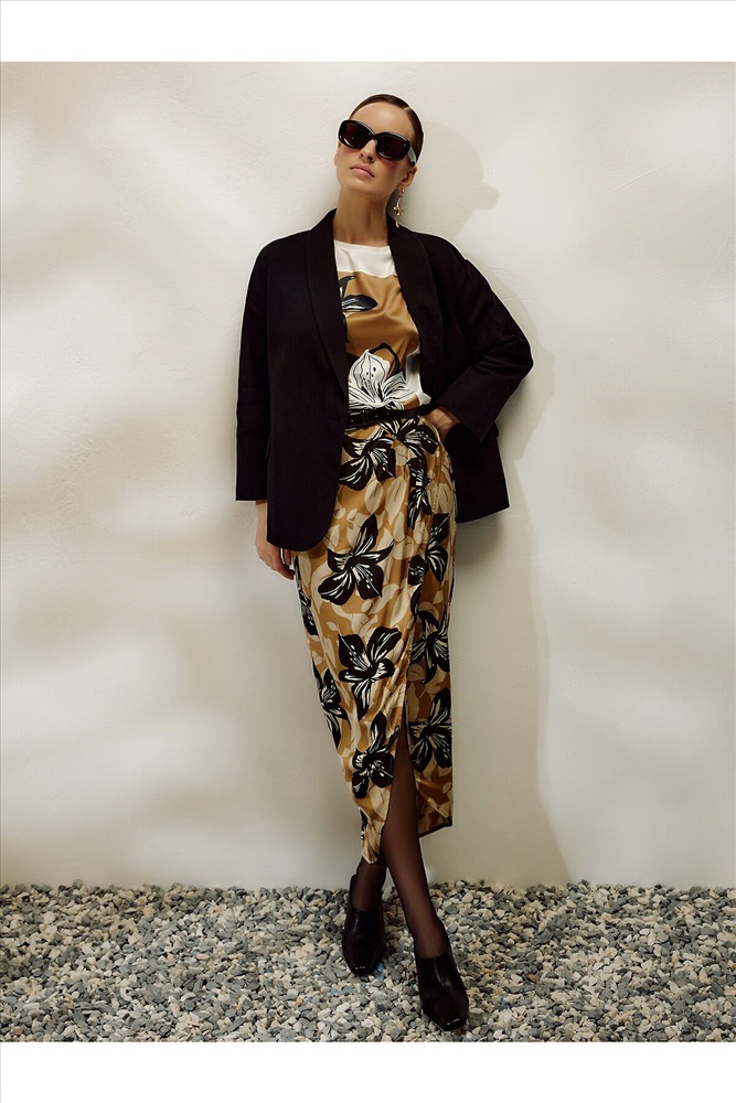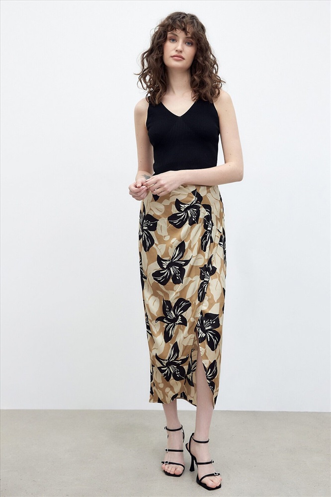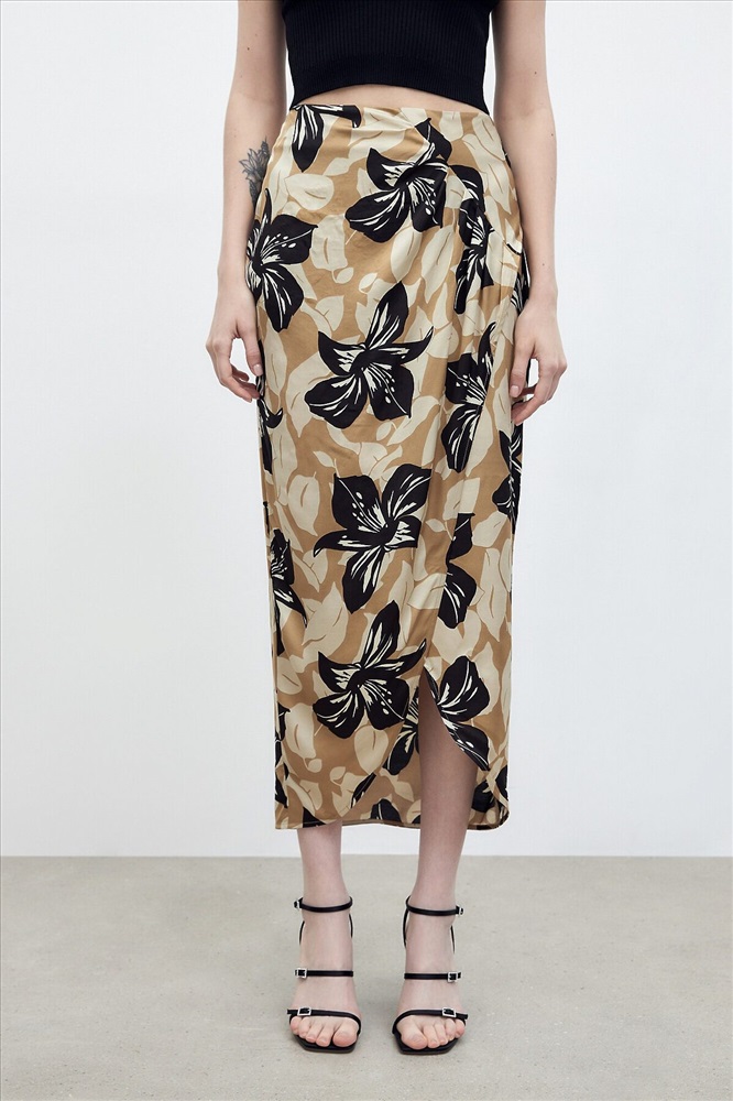 ID товара: 1090779 Состав: Вискоза 100% Сезон: Весна/Лето Длина: Миди Фасон: Прямой Рисунок: цветочный Декоративные элементы: Запах Основная ткань: Вискоза Стиль: классический Страна бренда: Россия Страна производства: Россия Прилегающая юбка с принтом. Комментарии к товару