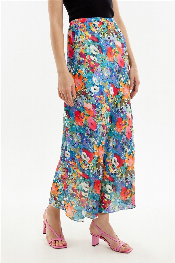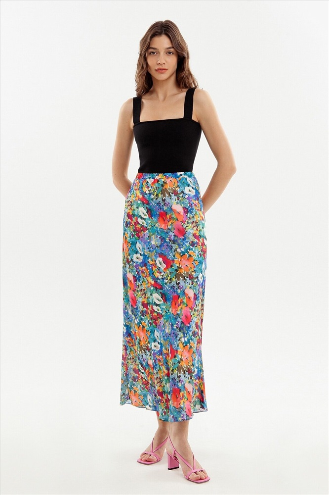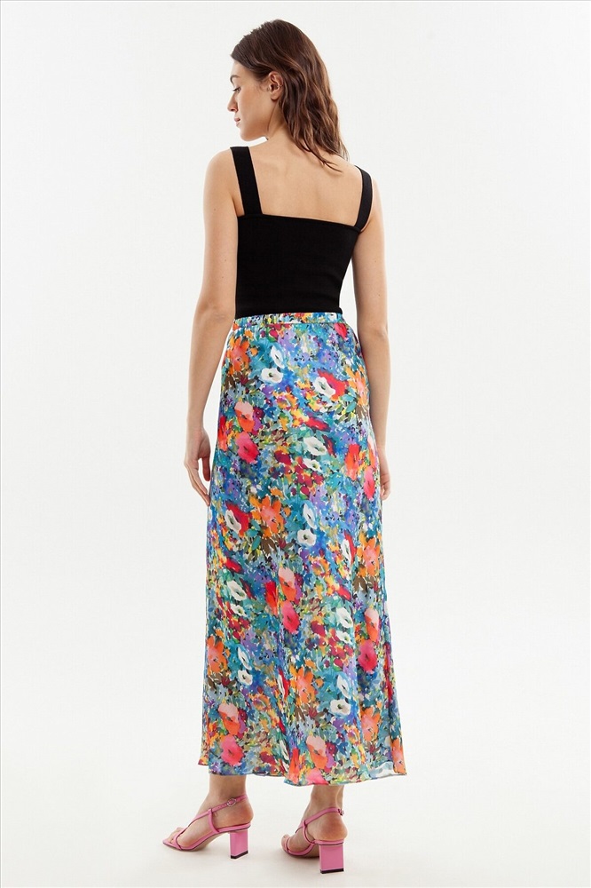 Юбка макси с поясом на резинке. Юбка в ярком цветочном принте. Юбка на подкладке.