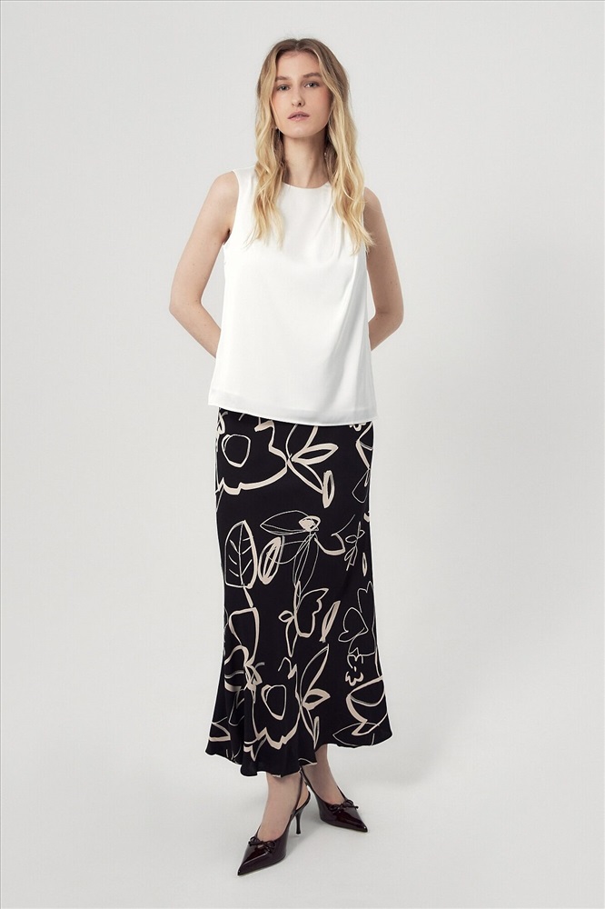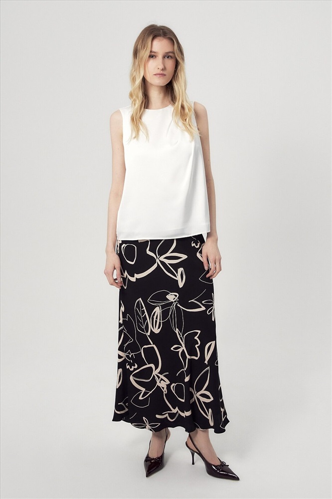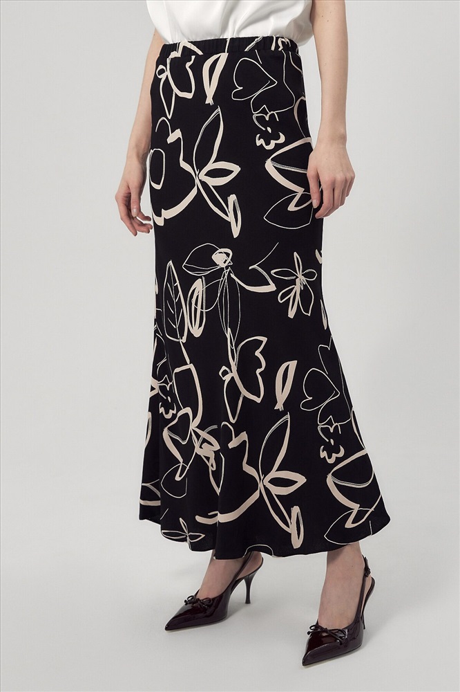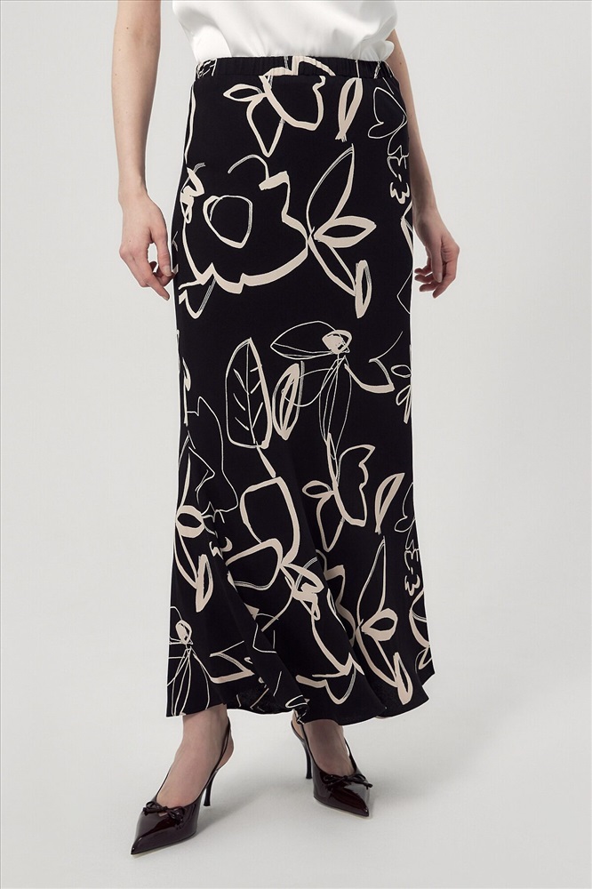 Юбка макси из плательной вискозной ткани с растительным черно-белом принтом. С поясом на резинке, юбка скроена по косой.