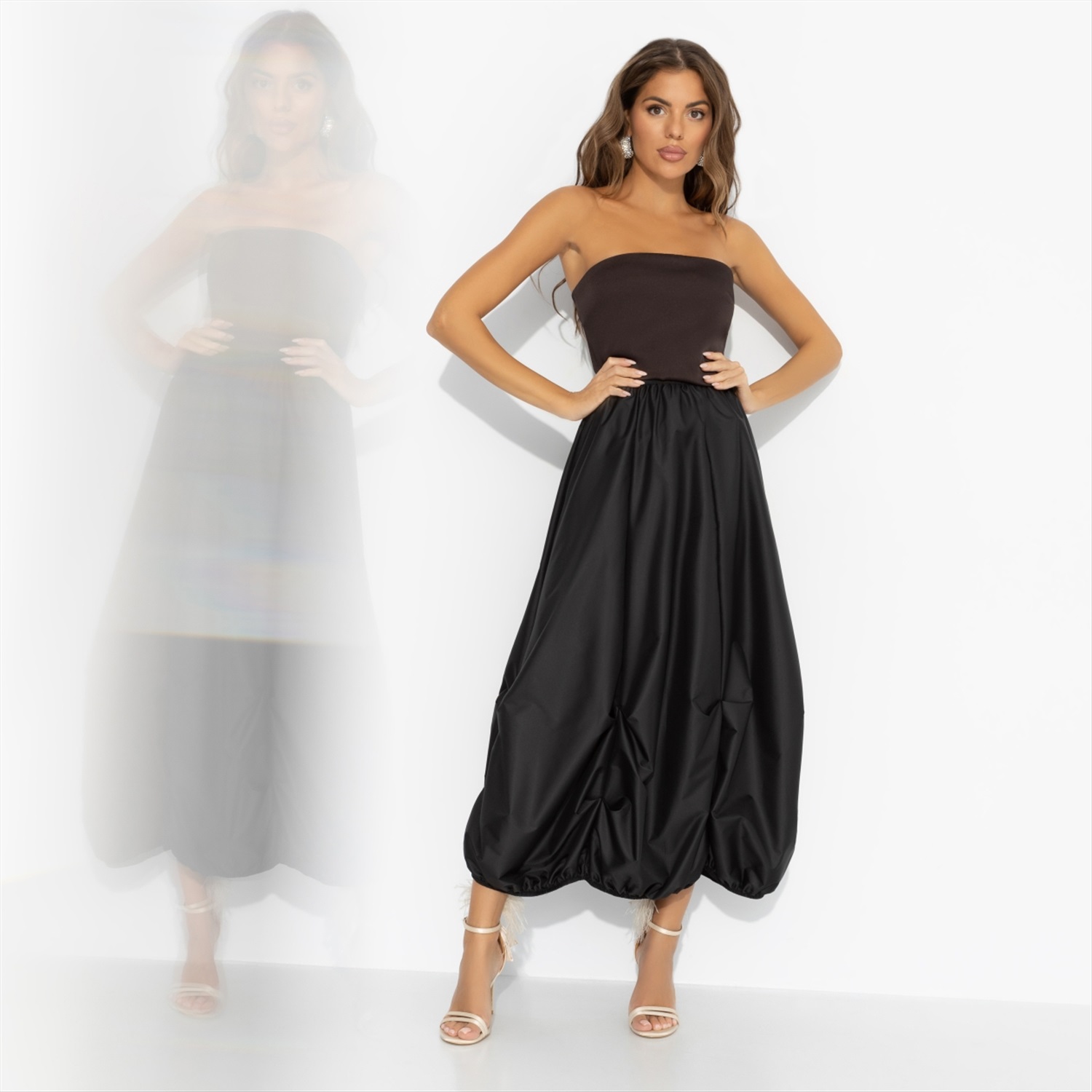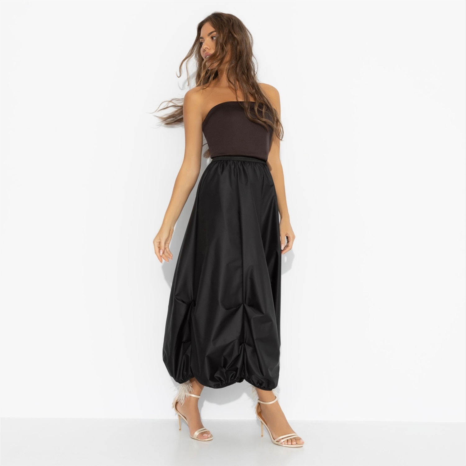 Ты создана для сцены! Юбка-баллон мгновенно переносит в атмосферу балета. Сразу хочется выйти в лучи софитов, захватить внимание зрителей и ловить аплодисменты ‒ твой силуэт привлечет внимние, где бы ты ни находилась. Посадка по талии подчёркивает фигуру, а легкий блеск ткани делает образ кинематографичным и дерзким. Юбка из плащевой ткани отлично держит форму. Пояс на резинке, декоративные защипы по подолу.