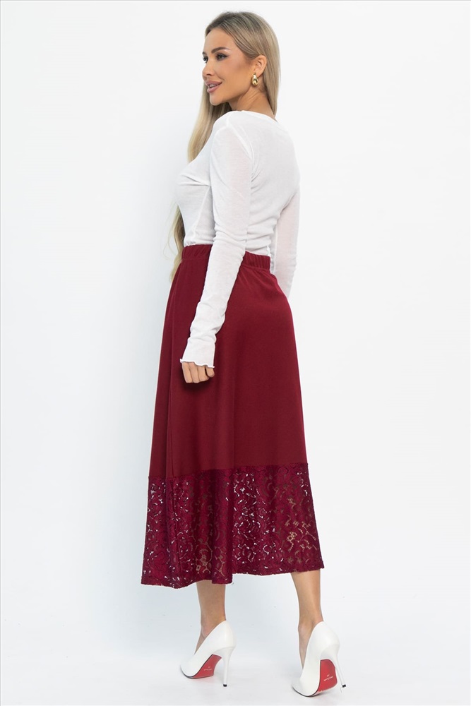Юбка миди А-силуэта из трикотажа с кружевом станет изюминкой вашего гардероба. Пояс на резинке обеспечивает идеальную посадку, а отделка кружевом добавляет романтичности и легкости образу. Без карманов и застежек, она дарит свободу движений и комфорт в носке. Качественный трикотаж гарантирует долговечность и стильный вид, что делает эту юбку идеальным выбором для повседневных и нарядных образов. Сочетайте с любимыми топами и обувью, чтобы создать уникальный стиль, который подчеркнет вашу индивидуальность.