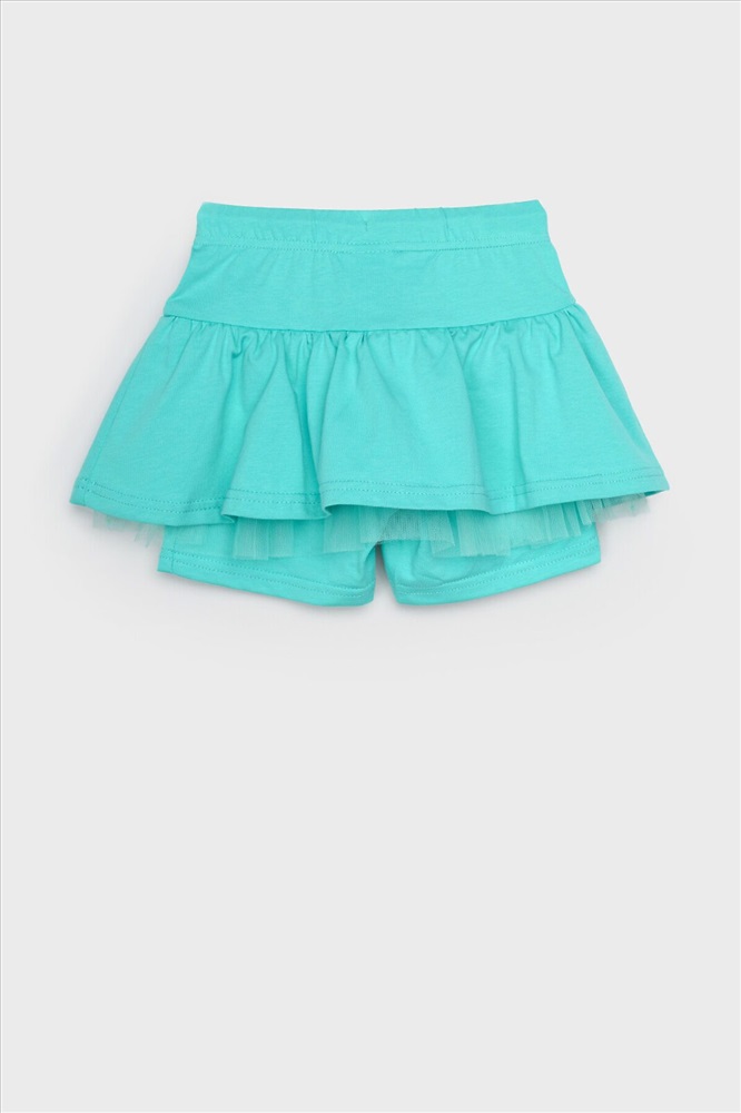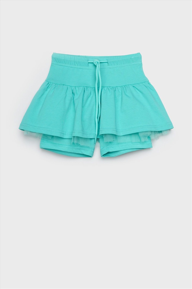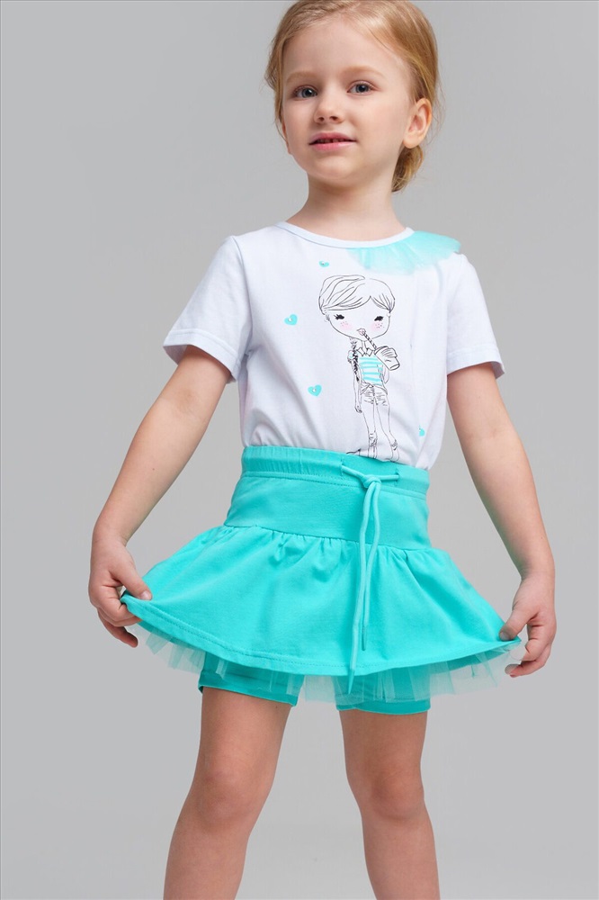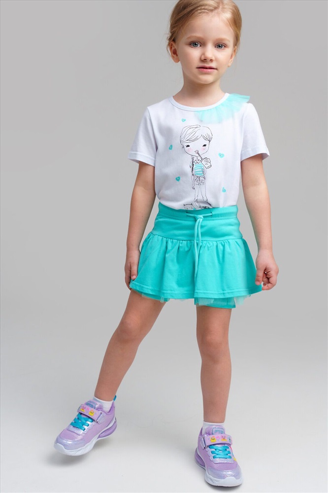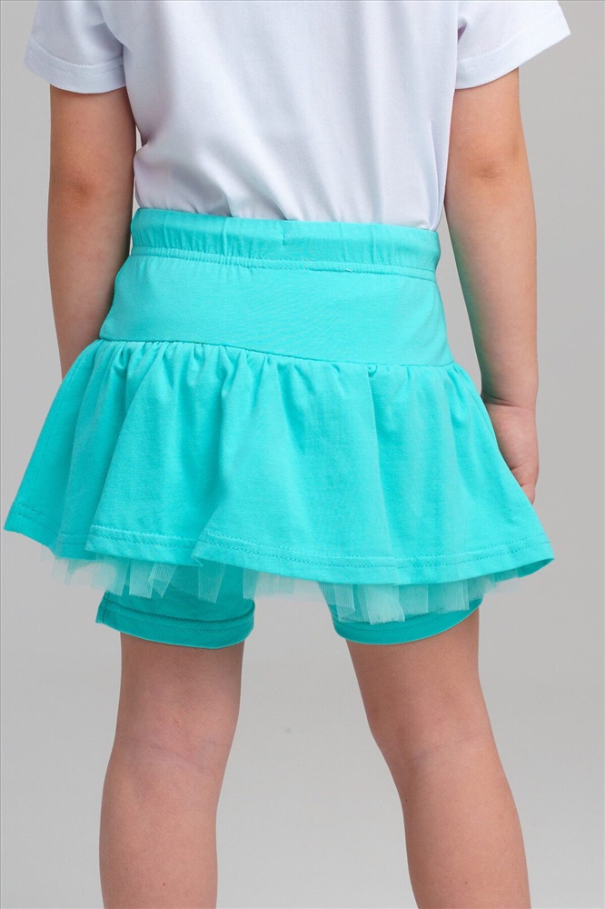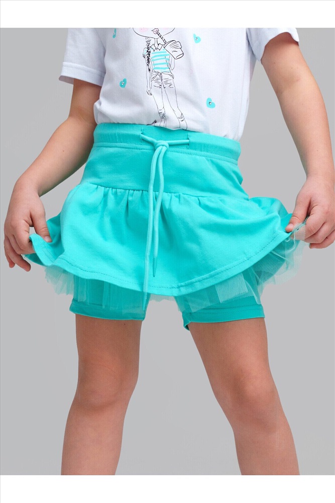 Юбка-шорты детские для девочки. Юбка-шорты из качественного и приятного на ощупь трикотажа джерси. Шорты на резинке со шнурком. Высокое содержание хлопка 95%. Благодаря наличию эластана в составе ткани изделие держит форму и меньше мнется. Декор из сетки. Модель выполнена из качественного и приятного на ощупь трикотажа.