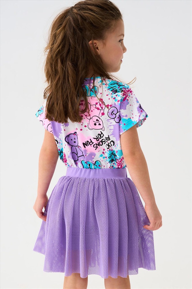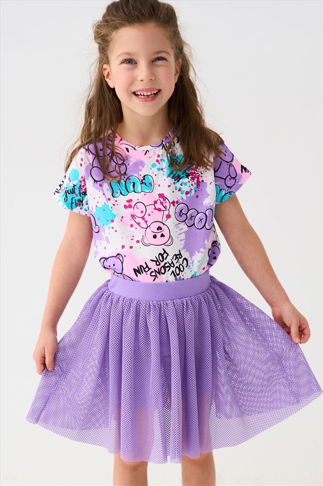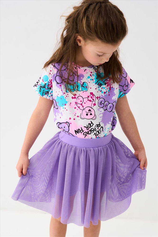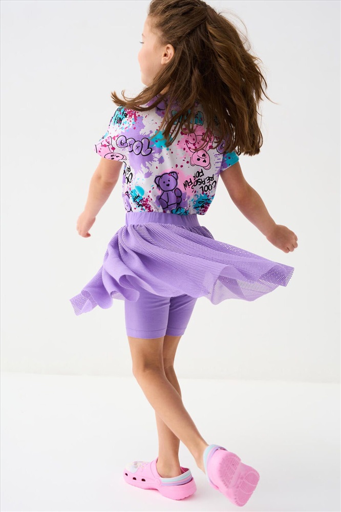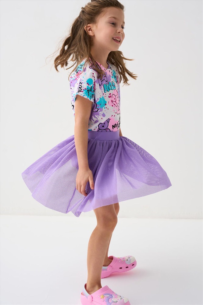 ID товара: 1240013 Состав: Шорты- 95% хлопок, 5% эластан, Юбка- 100% полиэстер Сезон: Весна/Лето Длина: До колена Фасон: Расклешенный Страна бренда: Германия Страна производства: Китай Лёгкая детская трикотажная юбка-шорты для девочки. Верхняя часть из сетки лилового цвета, а под ней скрыты удобные внутренние шорты. Пояс на мягкой резинке. Комментарии к товару