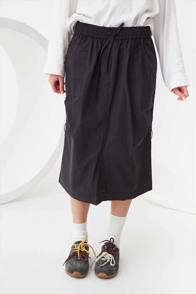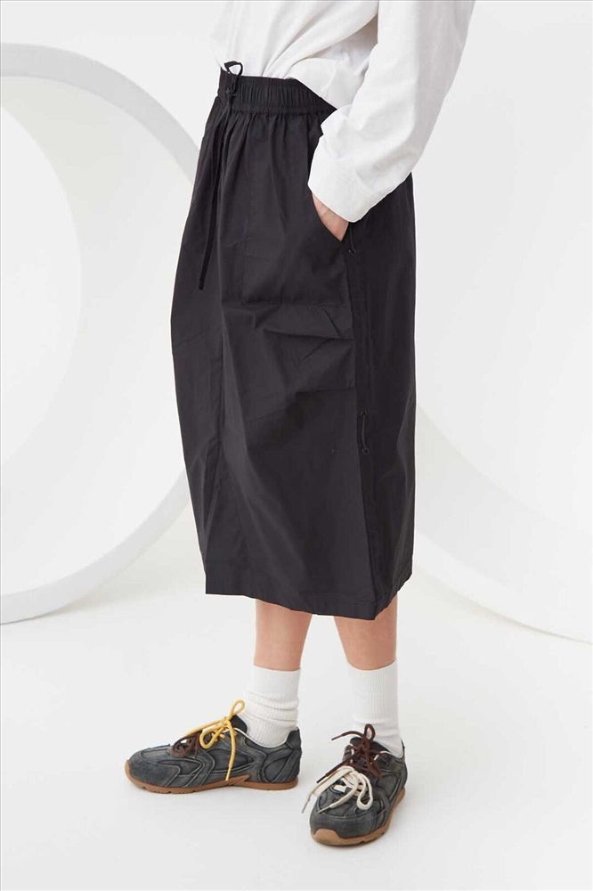 Юбка миди с накладными карманами и утяжками по бокам из 100% хлопка. Юбка без застёжки, с имитацией гульфика. юбка прямого кроя. Эластичный пояс-резинка с кулиской, благодаря которым можно регулировать высоту посадки и ширину обхвата. Шлица сзади. Размерный ряд 128 – 176 см.