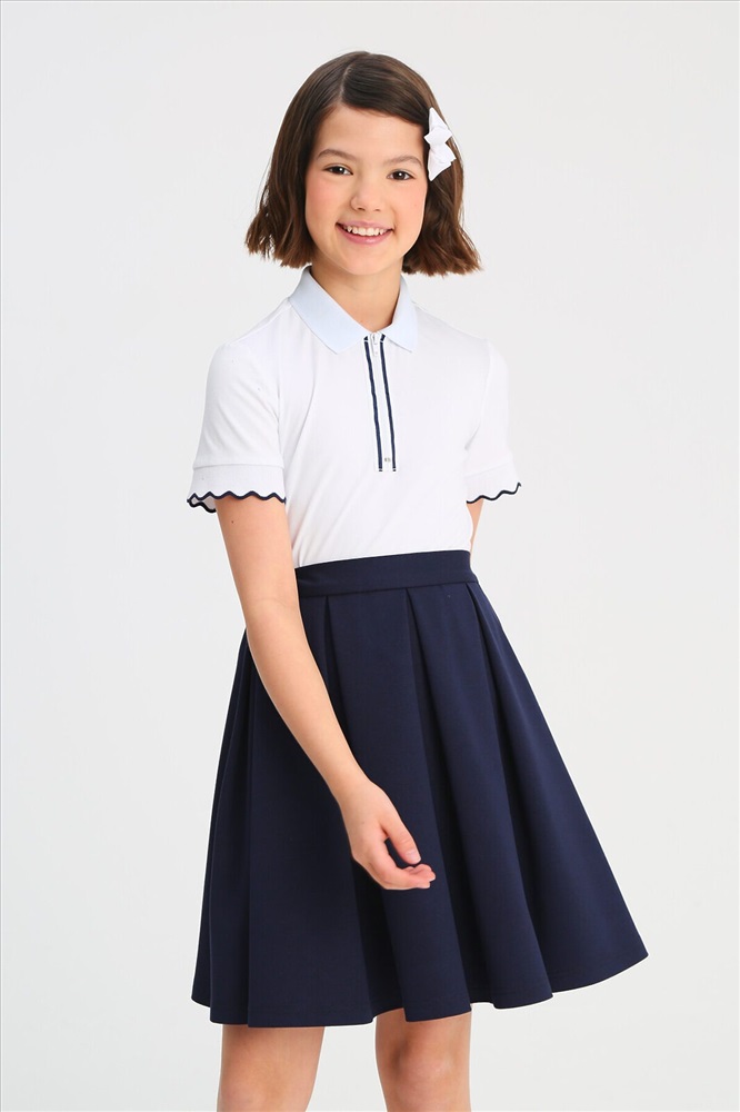 ID товара: 1104743 Состав: 58% Вискоза, 34% ПА, 8% ПУ Сезон: Весна/Лето Длина: Короткая Фасон: Расклешенный Вид застежки: Молния Рисунок: нет Основная ткань: Вискоза Стиль: Деловой Страна бренда: Россия Страна производства: Узбекистан Трикотажная юбка А-силуэта с втачным поясом и симметричными мягкими складками. Застегивается на потайную молнию в боковом шве и пуговицу на поясе. Пояс с регулируемой резинкой обеспечиваюет удобную посадку и комфорт в ежедневной носке. Благодаря свойствам ткани юбка отлично держит форму. Длина - чуть выше колена. Отличный вариант на каждый день. Комментарии к товару