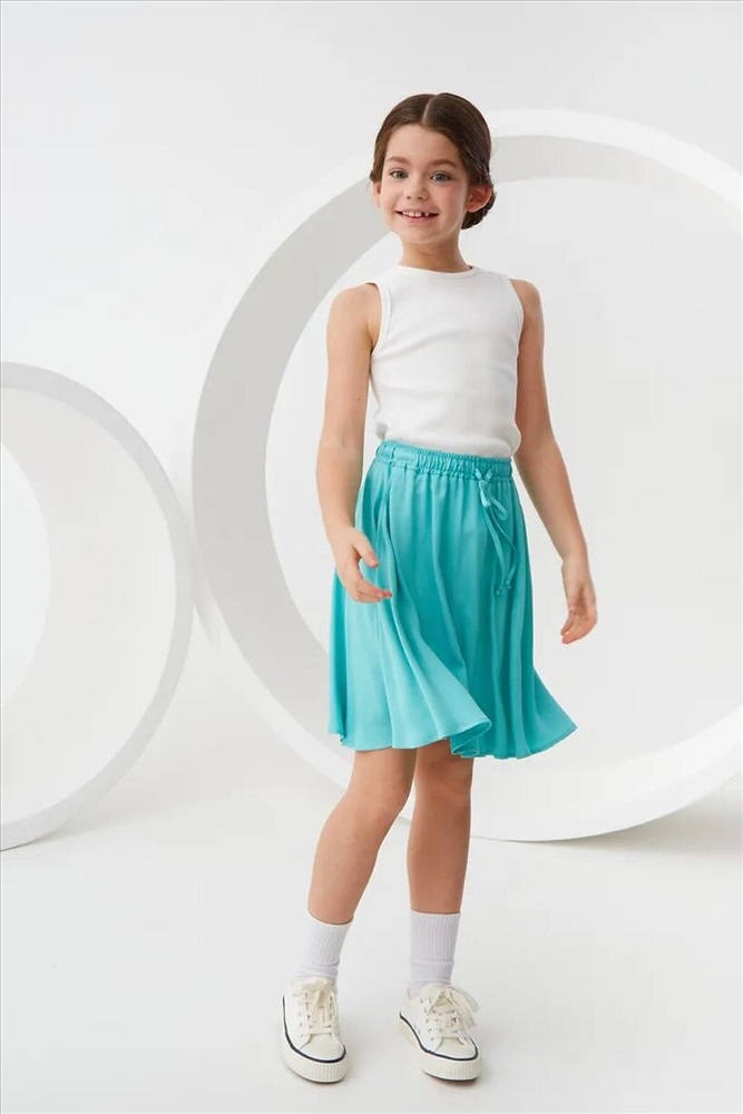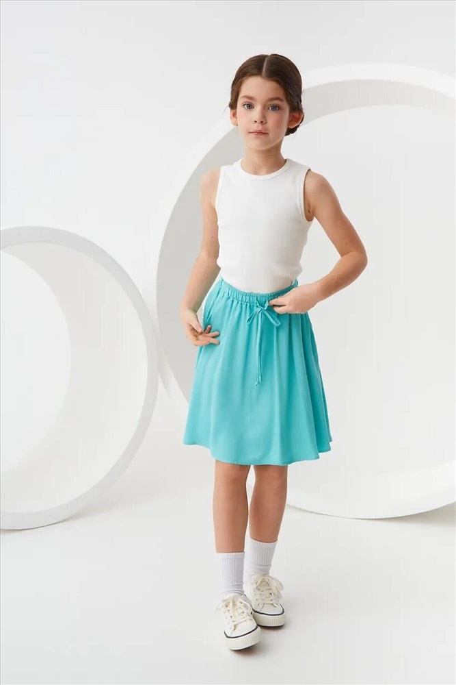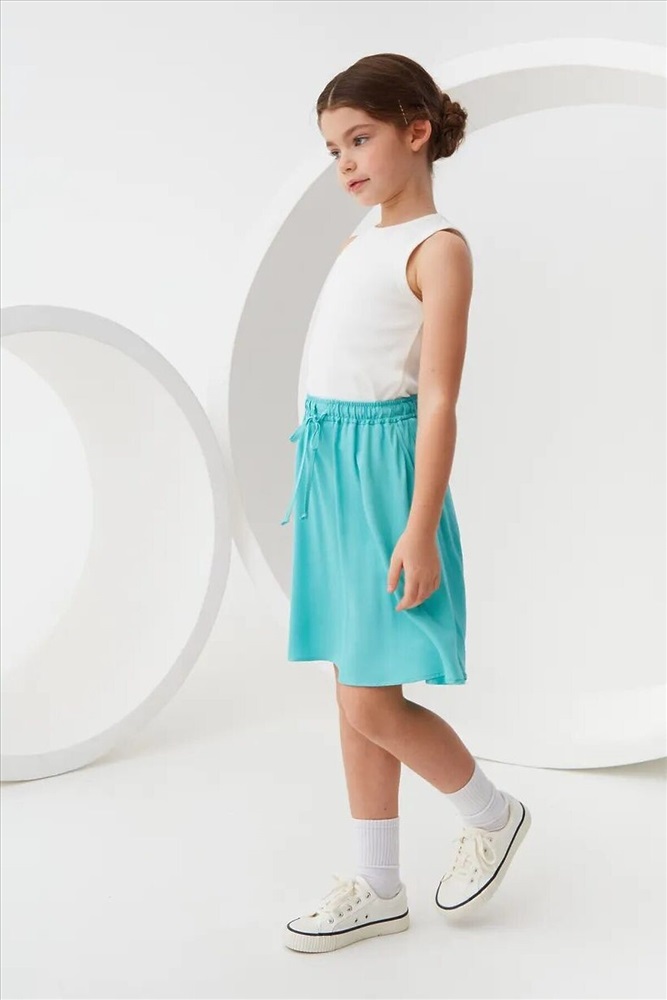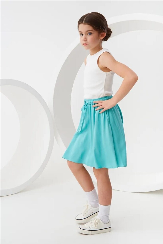 Короткая юбка А-силуэта из 100% вискозы – это невероятно мягкий и приятный материал для теплых летних дней. Средняя посадка талии и эластичный пояс с кулиской. Функциональные скошенные карманы по бокам. Эта модель идеально смотрится с топами, рубашками и футболками. Размерный ряд 128 – 176 см.