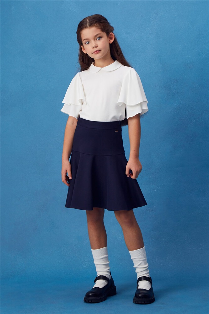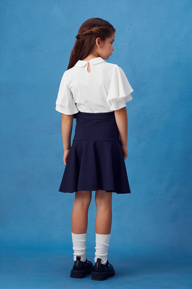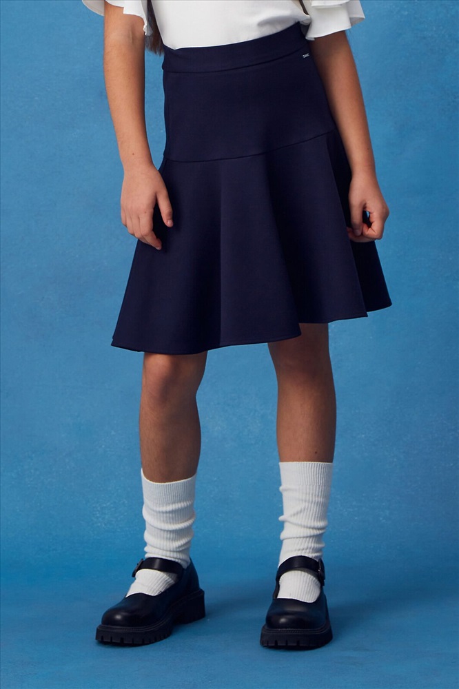 Юбка для девочки идеально подходит для школы, создавая стильный и комфортный образ. Изготовленная из трикотажного полотна, она обеспечивает отличную воздухопроницаемость и свободу движений. Благодаря своей конструкции, изделие удобно сидит на талии и не стесняет движений во время занятий.Модель не имеет подкладки и оснащена застежкой в левом боковом шве кокетки на потайную тесьму – «молния», а также петлю и пуговицу на поясе для надежной фиксации. Это решение делает процесс одевания легким и быстрым. Переднее и заднее полотнища выполнены в форме «солнца» на широкой притачной кокетке с боковыми швами, что добавляет объемности и игривости силуэту. Пояс притачной создает аккуратный вид, подчеркивая утонченность образа.