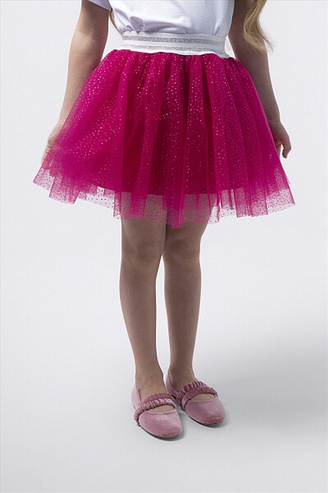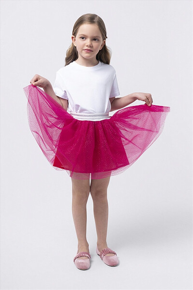 Юбка из двухслойной сетки с хлопковой подкладкой. Красиво драпируется благодаря многослойным сборкам. Пояс с эластичной резинкой обеспечивает идеальную посадку, свободу движений и легкость в носке. Блестящий декор вместе с ярким дизайном подчеркивает уникальное чувство стиля и индивидуальность.