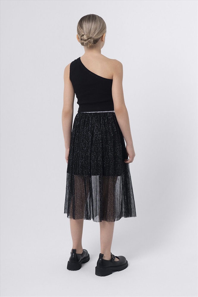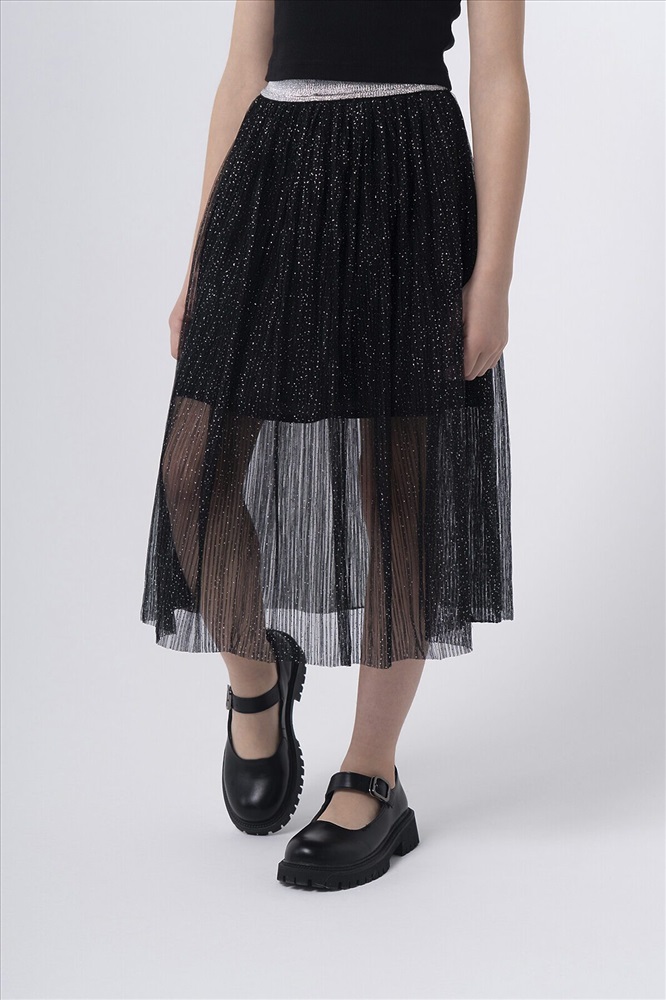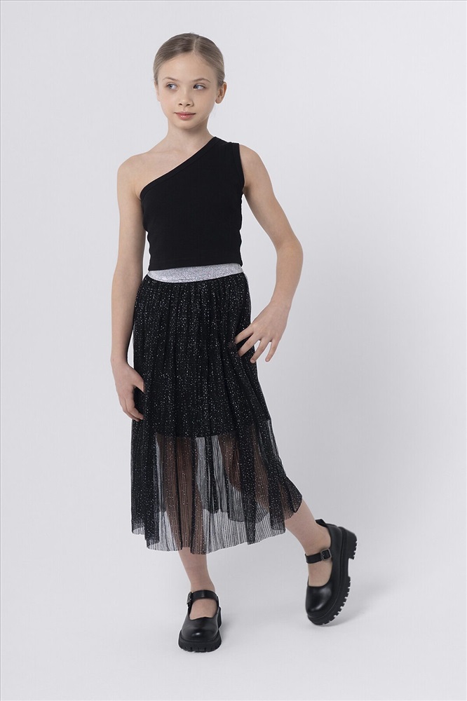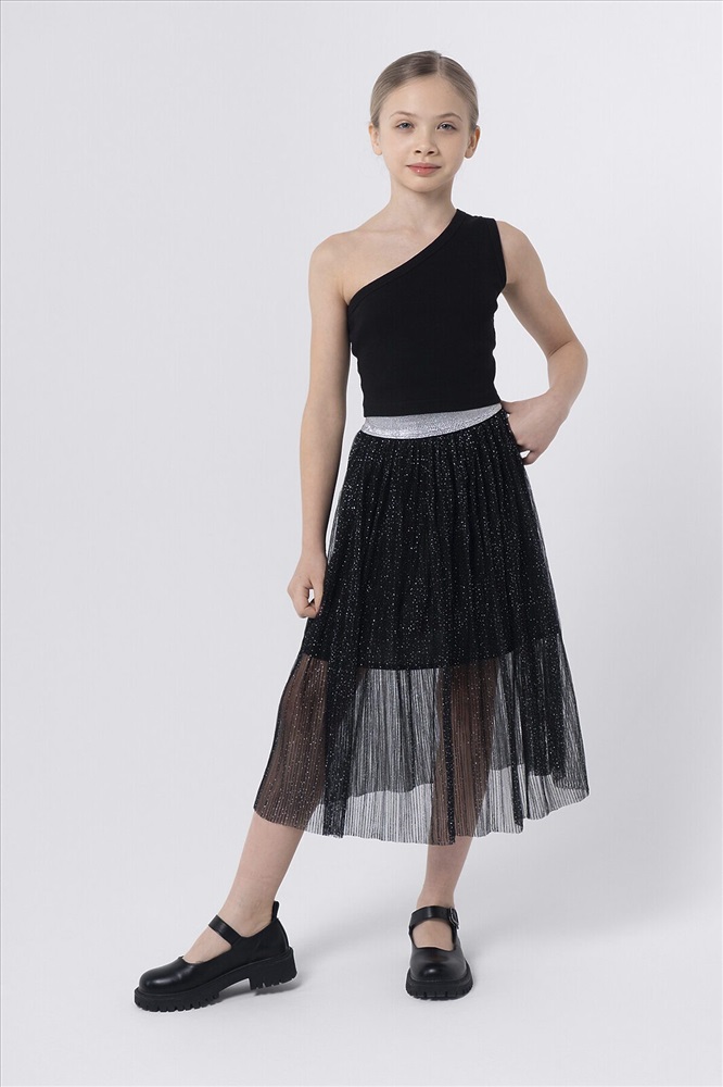 Юбка из двухслойной сетки с хлопковой подкладкой. Красиво драпируется благодаря многослойным сборкам. Пояс с эластичной резинкой обеспечивает идеальную посадку, свободу движений и легкость в носке. Блестящий декор вместе с ярким дизайном подчеркивает уникальное чувство стиля и индивидуальность.
