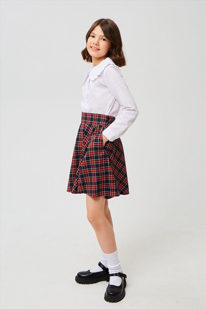 Изящная юбка-солнце для девочки из износостойкой поливискозы с добавлением эластичных волокон, обеспечивающих комфорт в движении. Застёгивается на потайную молнию в боковом шве и две пуговицы на втачном поясе.Пояс с регулируемой резинкой обеспечивает удобную посадку и комфорт в ежедневной носке. Благодаря свойствам ткани юбка отлично держит форму. Длина - чуть выше колена. Отличный вариант на каждый день.