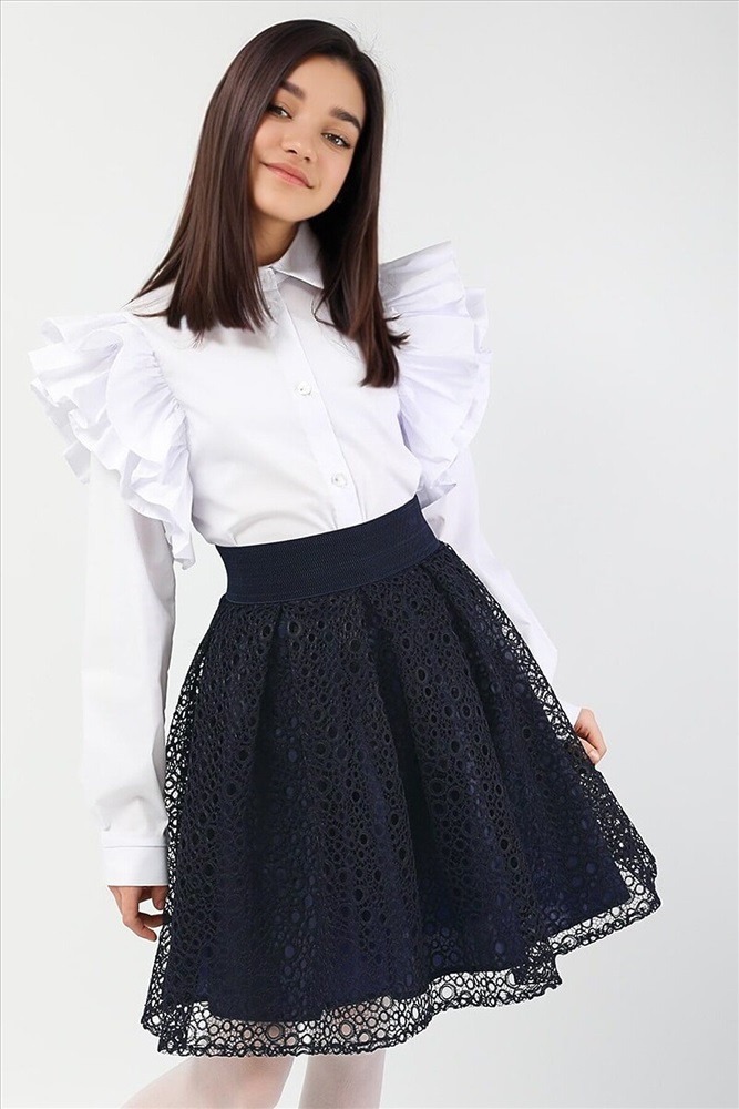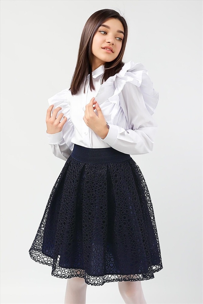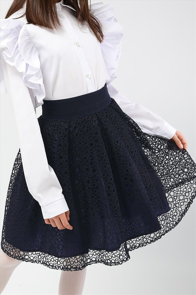 Юбка для девочки СольПерец. Эффектная юбка, с широким, эластичным поясом, сзади застёгивается на молнию золотистого цвета. Верхний слой - плотная сетка, с интересным плетением. Низ - лёгкий, атласный подклад. Прочный, износоустойчивый материал позволит надолго сохранить форму и привлекательный внешний вид изделия. Универсальный вариант как для школы, так и для торжественного мероприятия. Размер 128 (рост 122-128 см): длина изделия 42 см, обхват талии 50-54 см. Размер 134 (рост 128-134 см): длина изделия 44 см, обхват талии 54-56 см. Размер 140 (рост 134-140 см): длина изделия 46 см, обхват талии 56-60 см. Размер 146 (рост 140-146 см): длина изделия 50 см, обхват талии 60-64 см. Размер 152 (рост 146-152 см): длина изделия 52 см, обхват талии 64-68 см.