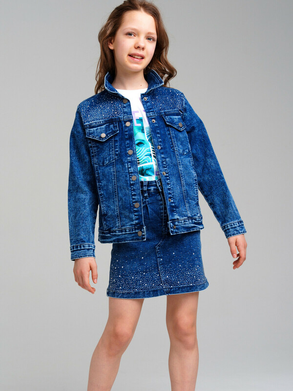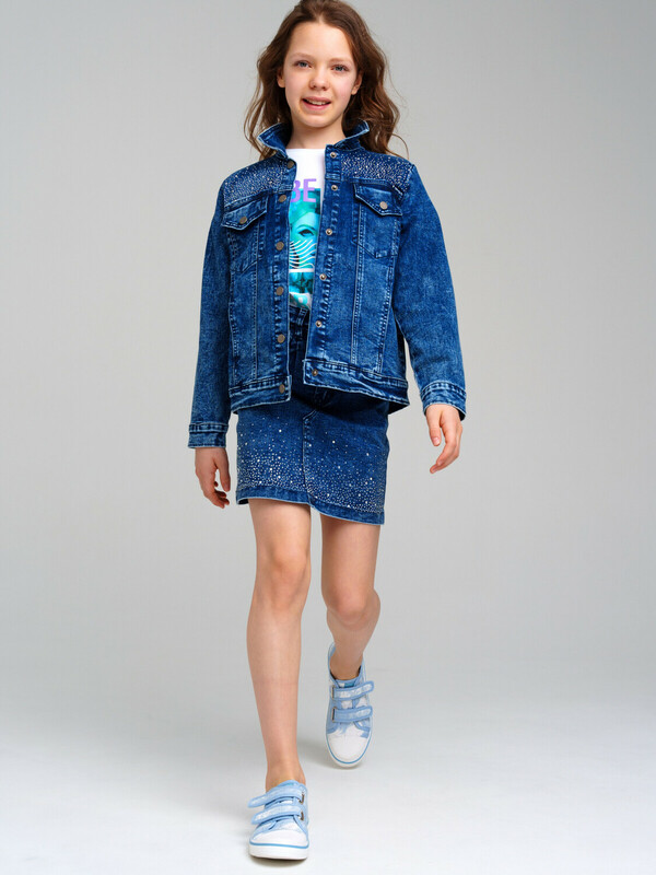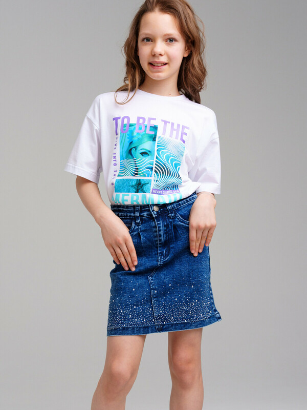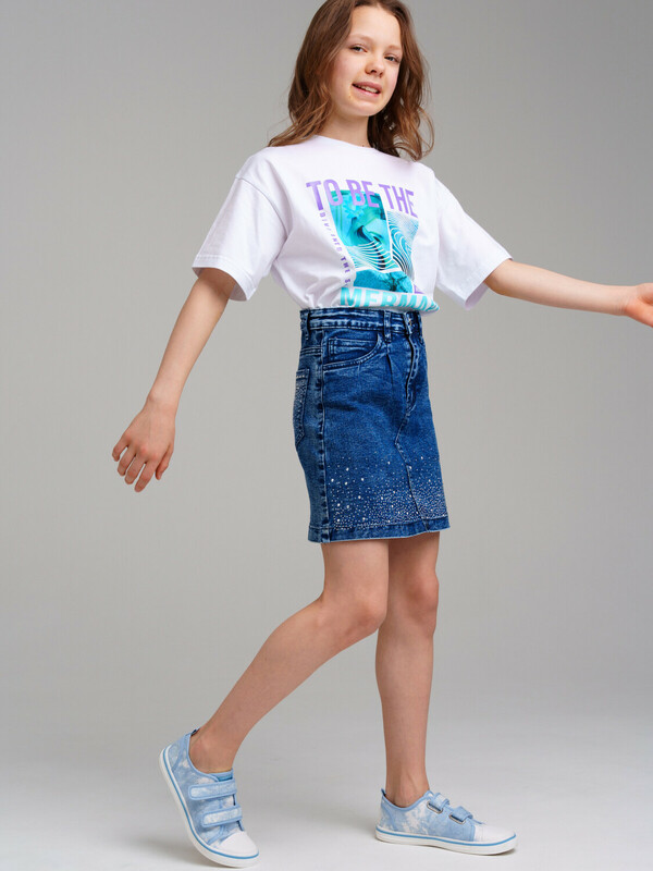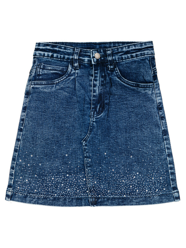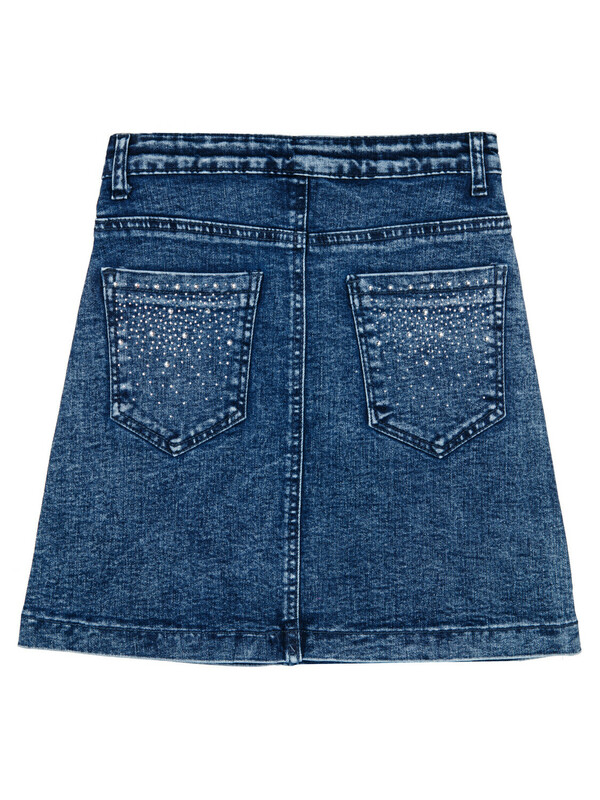 Юбка джинсовая для девочки Застежка на пуговицу, пояс с внутренней утяжкой.