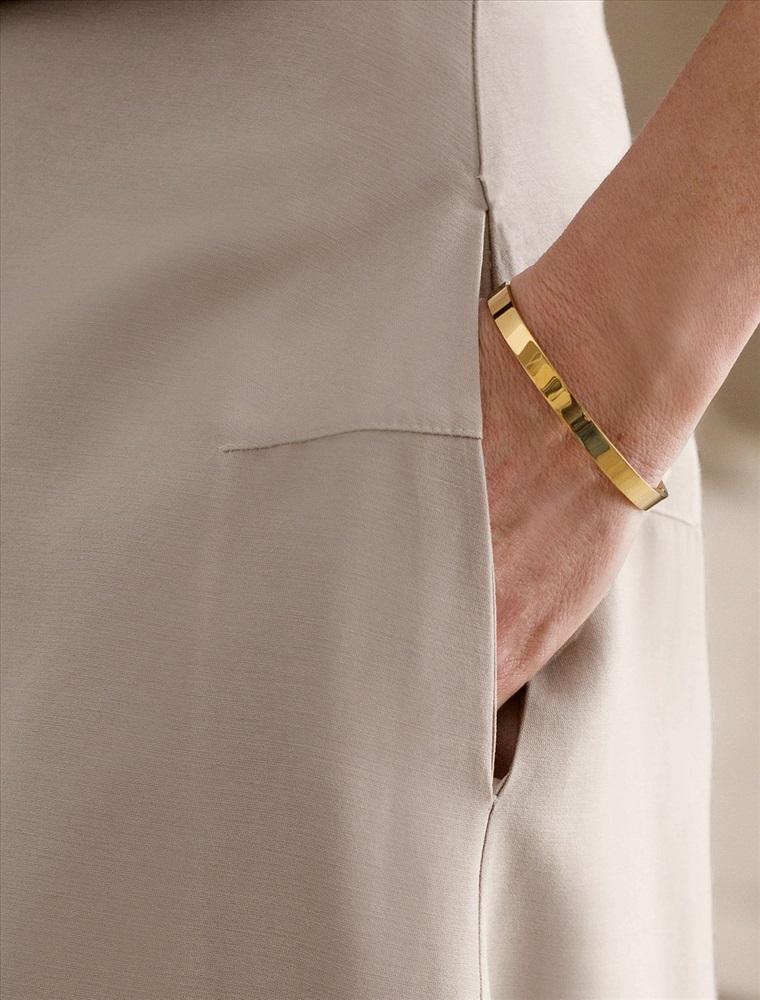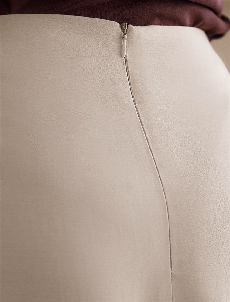 Юбка-тюльпан светло-бежевого цвета выполнена из плотного лиоцелла. Лиоцелл это более дорогой и экологичный вариант вискозы, очень прочный и шелковистый. Необычный акцентный крой юбки будет притягивать внимание окружающих. Форма тюльпана достигнута с помощью дополнительных вытачек и швов спереди и сзади. Приятным комфортным дополнением этой модели являются карманы в боковых швах. Разрез добавляет образу легкости и динамики. Юбка подойдет на большие размеры, на высокий рост будет длина миди, а низкий рост - длина макси. Такая юбка идеальна для создания современного образа от делового до кэжуал с акцентом на фактуру ткани и оригинальный силуэт.