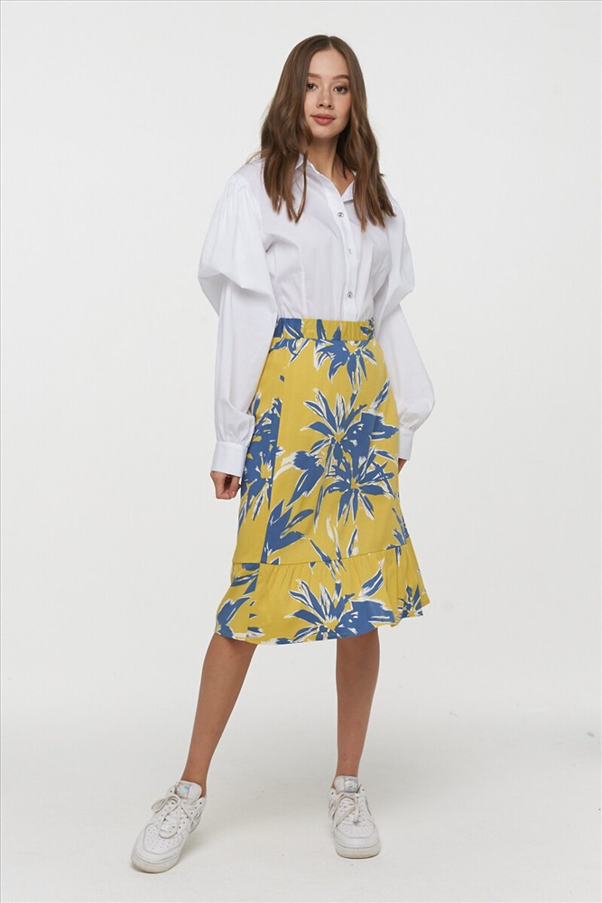 ID товара: 676812 Состав: 97% Вискоза, 3% Спандекс Сезон: Весна/Лето Длина: 66 Фасон: Трапеция Рисунок: цветочный Основная ткань: Вискоза Стиль: Повседневные Страна бренда: Россия Страна производства: Россия Юбка длины миди, подол декорирован воланом. Комментарии к товару