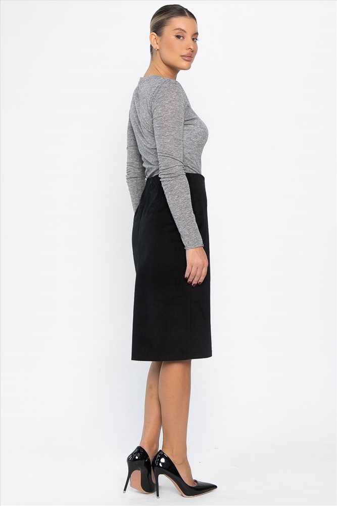 Прямая вельветовая юбка — идеальный выбор для любого случая. Ее классическая миди-длина гармонично сочетает элегантность и современность. Модель подходит как для повседневных, так и для офисных образов, обеспечивая комфорт и стиль.