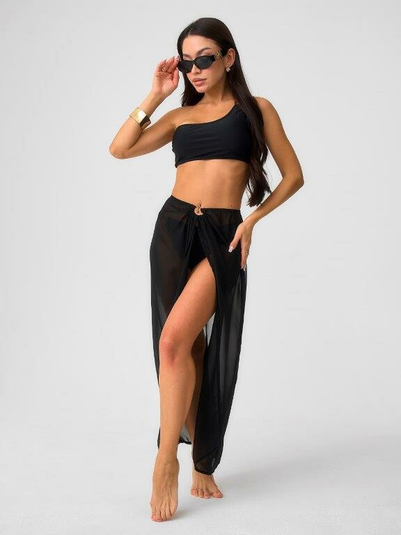 Производитель: Sensera Длинная юбка из синтетического шифона на резинке по линии талии украшена металлической пряжкой золотого цвета.