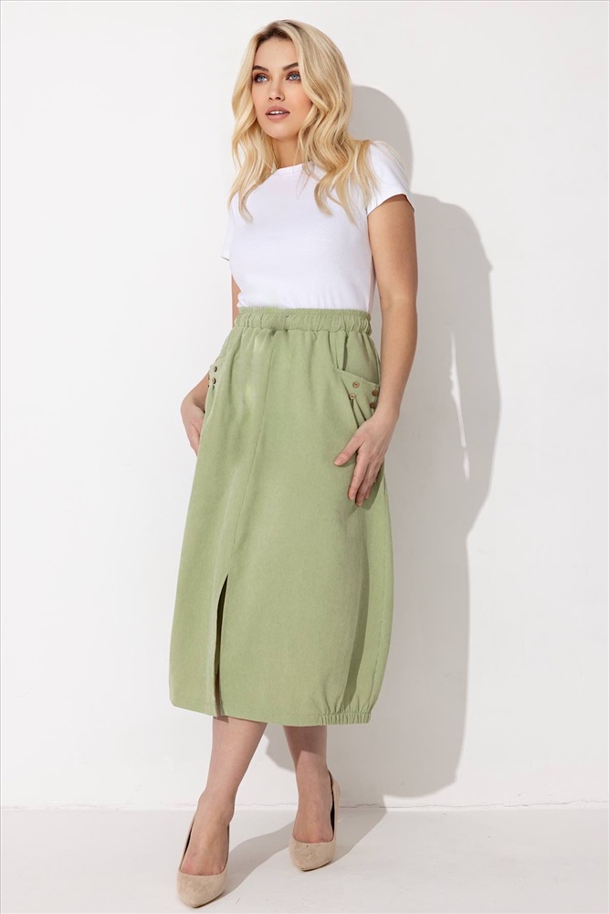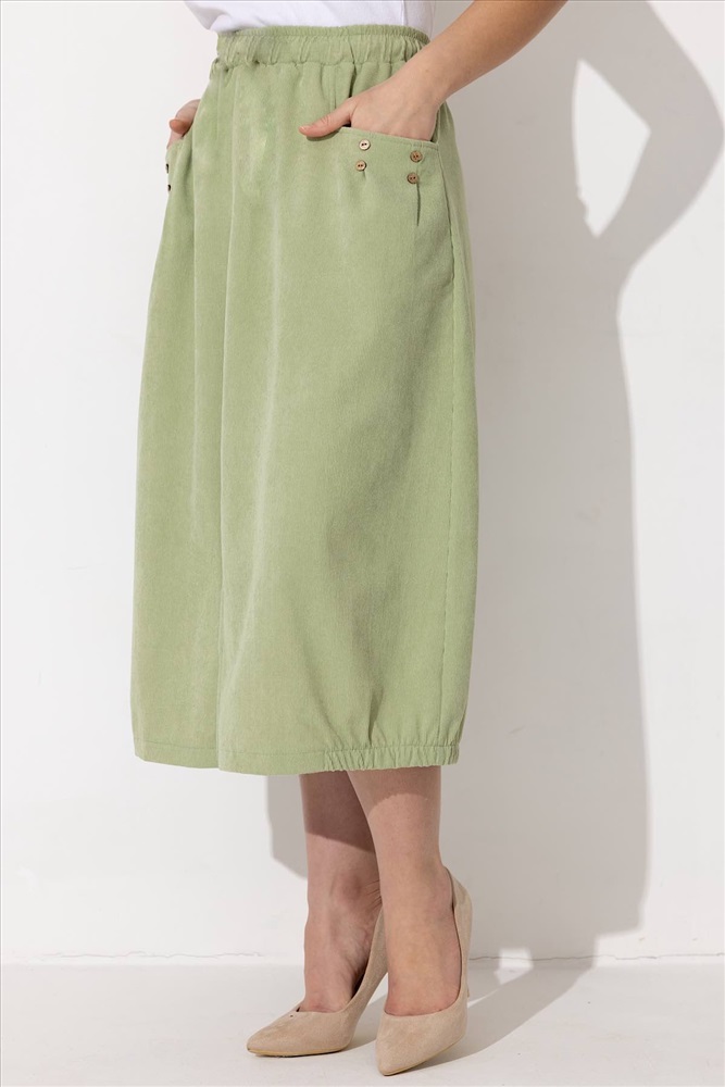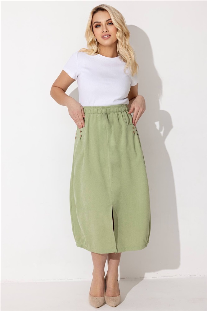 Юбка из вельвета благодаря этому изделие не даёт усадку при стирке. Юбка женская с притачным поясом на резинке, что обеспечивает дополнительный комфорт при носке. Два накладных кармана.