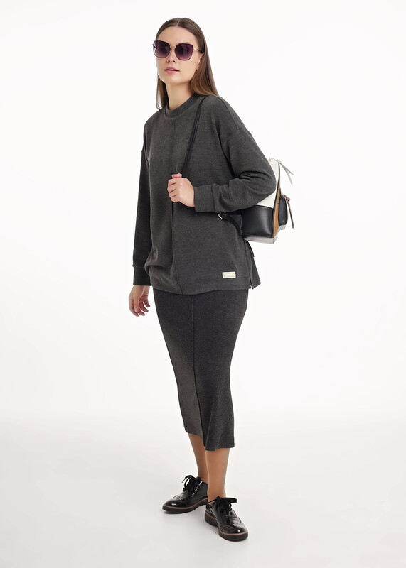 Производитель: Clever Юбка миди прямого силуэта из трикотажного полотна рибана с вискозой. По талии притачной пояс на внутренней резинке. На детали переда вертикальный защип. На спинке средний шов, внизу разрез.