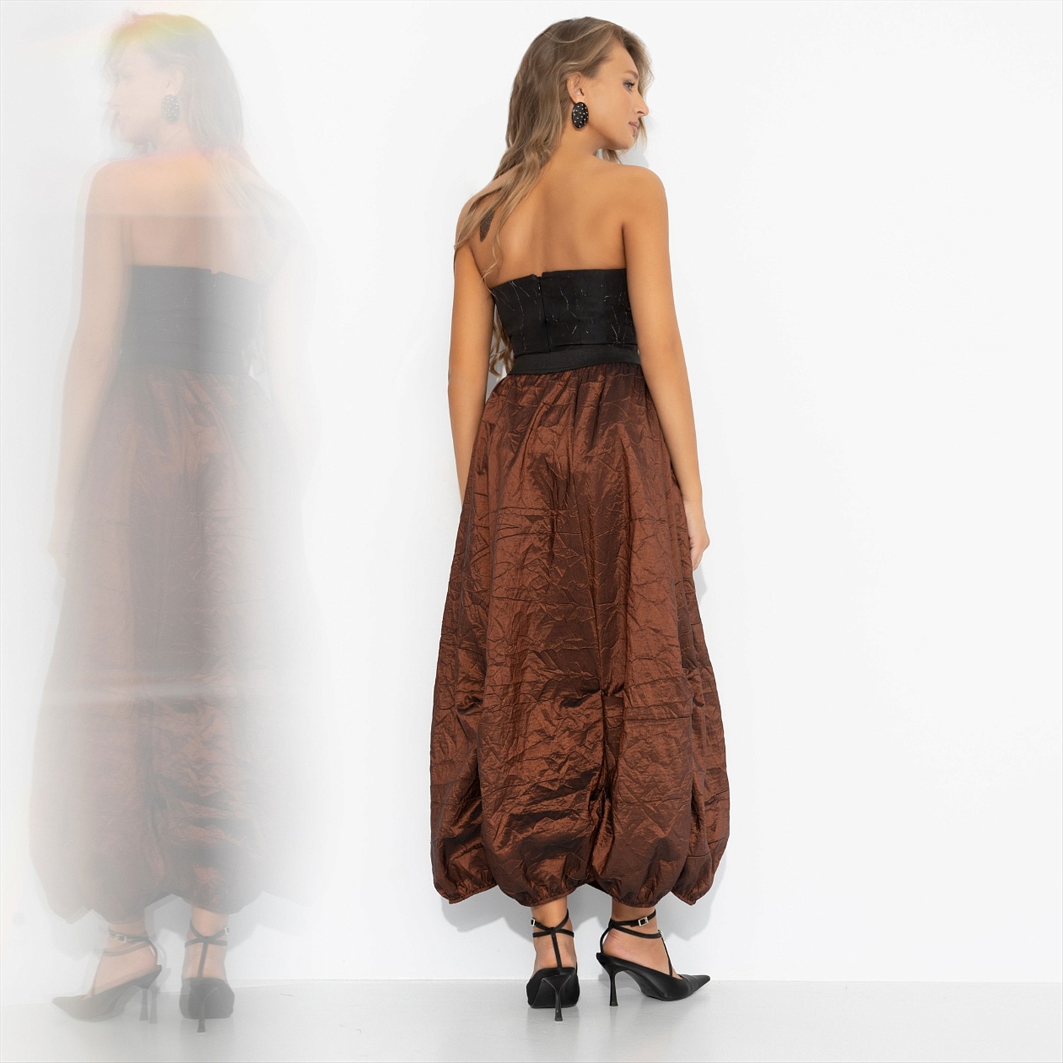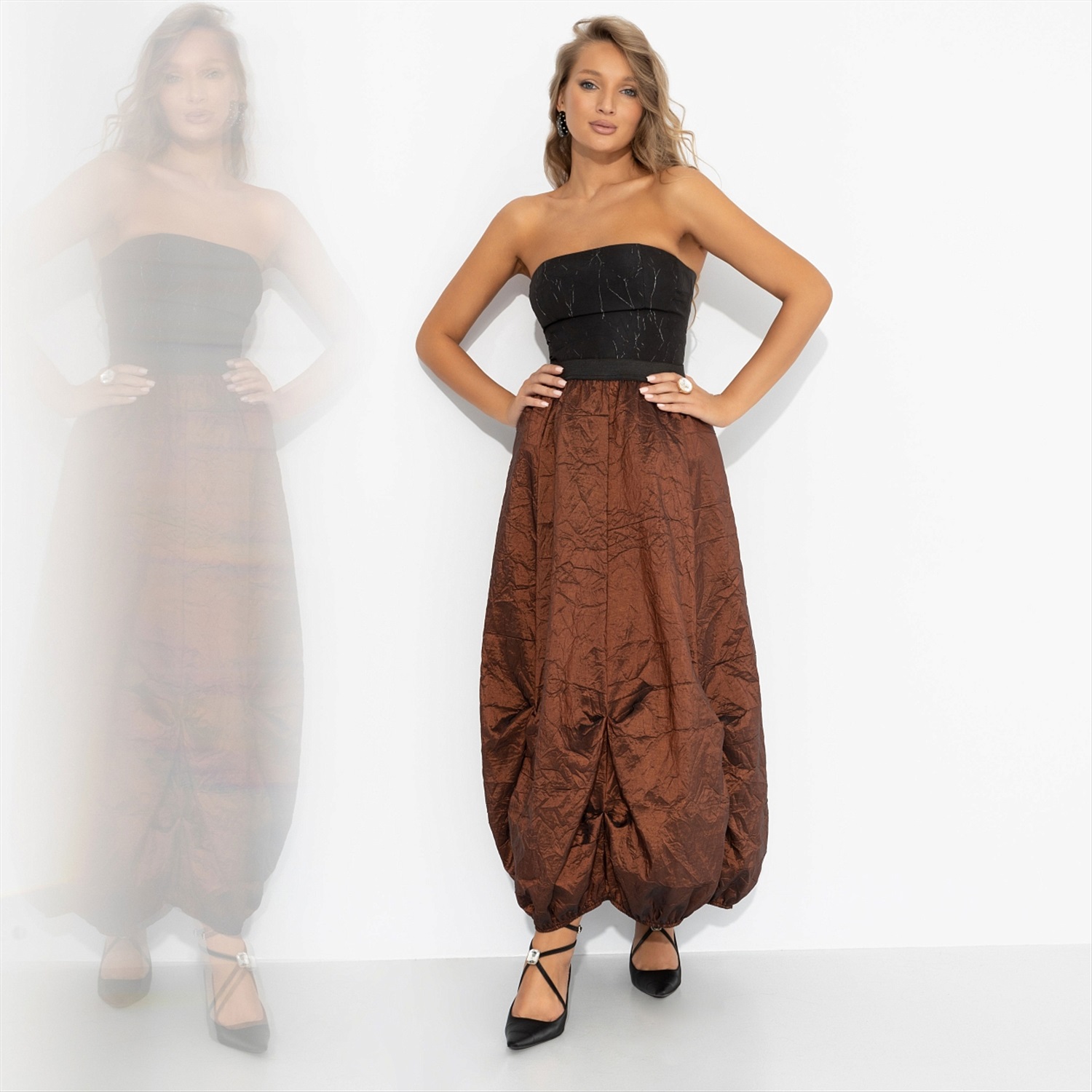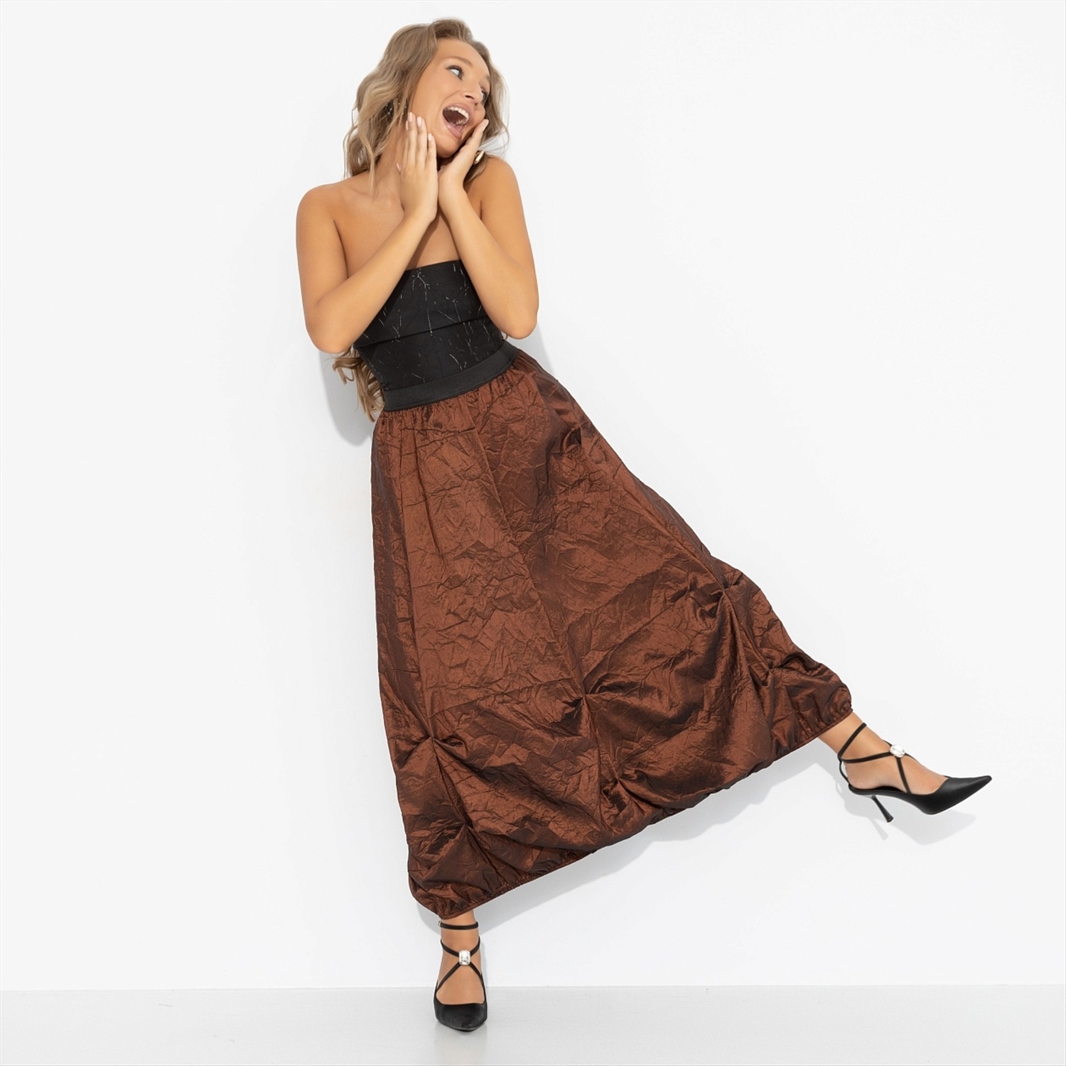 Юбка-баллон в оттенке эффектной бронзы, как на показах Celine. Хочешь удивить всех на корпоративной ёлке? Надевай с корсетом для wow-выхода по примеру Зендеи или с укороченным блейзером – в духе модных хроник Met Gala. Объемная юбка из жатой ткани с отливом и защипами. Пояс на резинке. Держит форму, не мнётся. Идеальна для трендовых сетов и акцентных образов любой вечеринки. Комментарии к товару